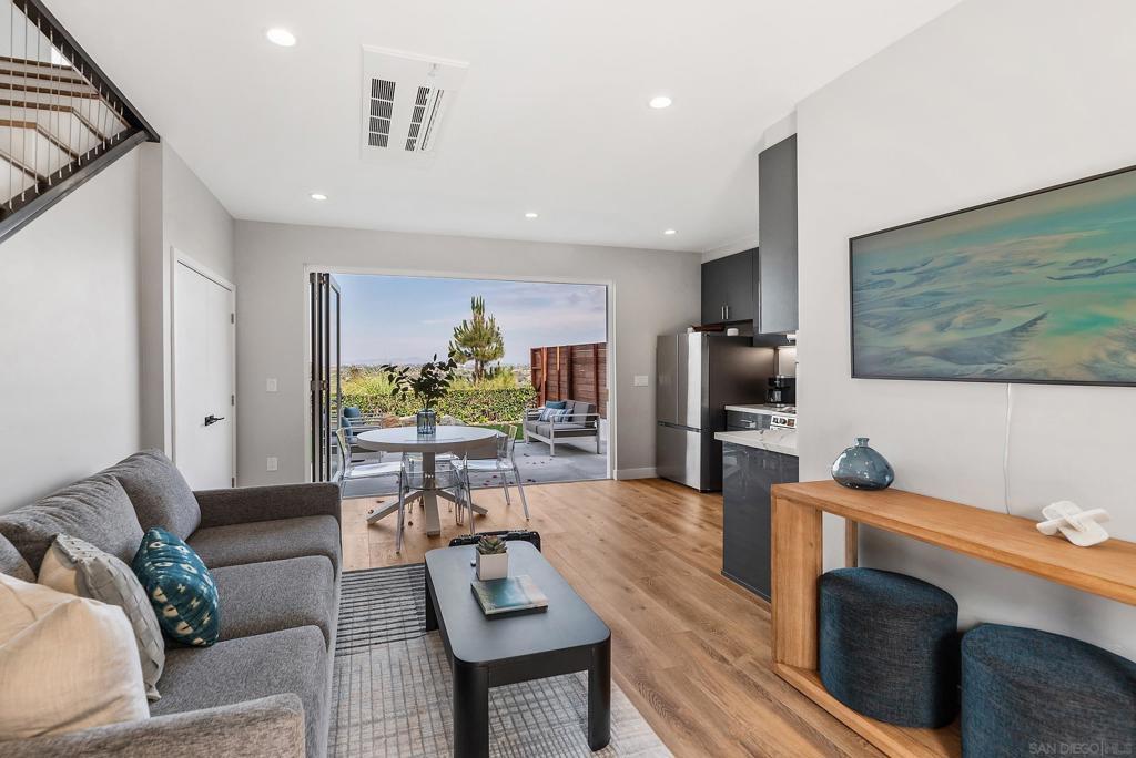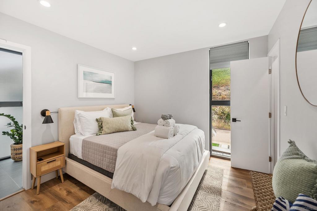 FURNISHED MIDTERM RENTAL — Designer Canyon House in La Jolla Experience elevated coastal living in this newly built modern 3BR / 2BA ADU with breathtaking canyon and skyline views. Thoughtfully designed by Suzanne Brown Designs, this elegant two-story home combines high-end finishes with comfort and functionality—perfect for extended stays, relocations, or remote professionals. Main living area features open-concept flow, abundant natural light, and sliding doors to a serene backyard with firepit lounge seating. Gourmet kitchen includes stainless steel appliances, full fridge/freezer, and dining table for four overlooking the canyon. Downstairs bedroom/TV room offers a king sleeper sofa with barn-door privacy, flat-screen TV, and full bath nearby. Upstairs, a loft office provides a dedicated workspace. Two additional bedrooms share a Jack-and-Jill bath with modern glass shower. Primary suite features a king bed, mirrored closet, and panoramic canyon-to-city views; guest bedroom includes a queen bed and walk-in closet. Additional highlights: full-size washer/dryer, stylish furnishings, and convenient location minutes from La Jolla beaches, shops, dining, and downtown San Diego. Sleeping Setup (max 6): BR1 King • BR2 Queen • BR3 King Sleeper Sofa • 2 Baths Rates reflect short-term rental pricing and vary by season and length of stay. Published amounts are estimates; final pricing, fees, and availability are subject to change until a signed agreement. Please inquire for an exact quote.