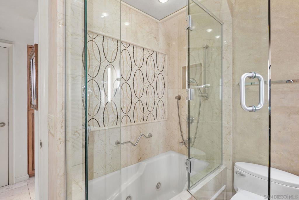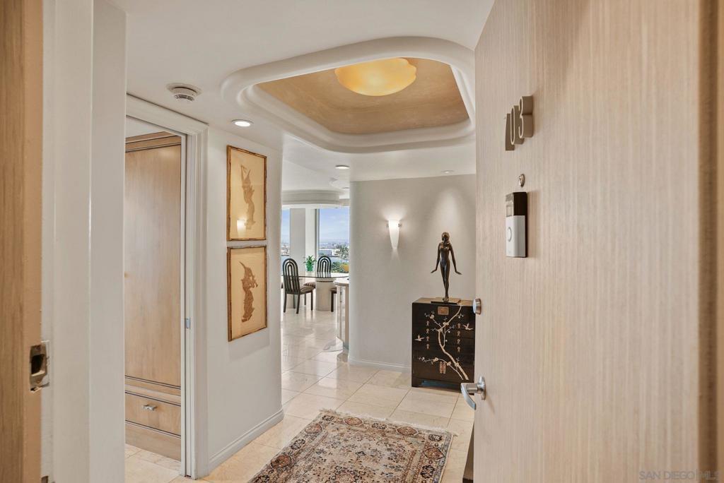 Only rarely do you come across a unit like El Encanto #703. The original floor plan included three bedrooms and three bathrooms....a corner unit located on the 7th floor with panoramic bay, bridge and city skyline views plus ocean waves. Today, the unit has been redesigned and remodeled to offer an elegant and timeless one-of-a-kind property. Double doors open to the oversized Primary Suite which includes "his and her" bathrooms plus two large walk-in closets. The Guest bedroom is designed with an ensuite bathroom. This large bedroom has stunning bay, bridge and downtown city views. The open and generous living room and dining room with built-in cabinetry is perfect for entertaining or relaxing to enjoy the views from the floor to ceiling windows. The chef's kitchen is complete with top-of-the-line appliances and European Laminate cabinetry. Satin finish travertine floors are accented with a granite center inlay. El Encanto #703 must be seen to be appreciated....call now to make an appointment.
