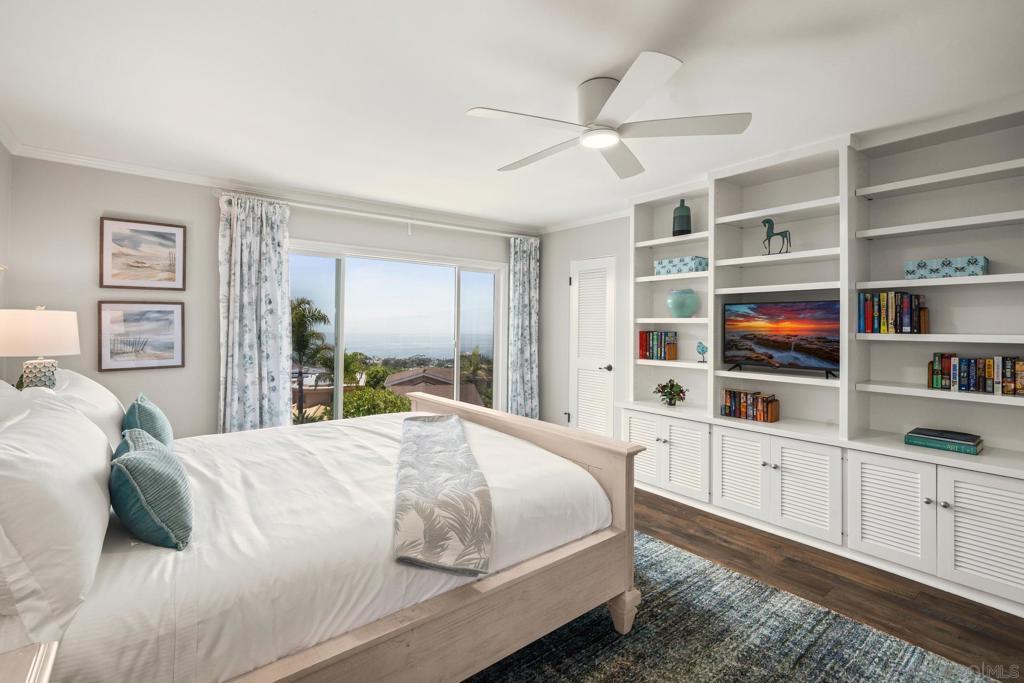 Perched above La Jolla Village, this elegant hilltop home offers panoramic ocean views, timeless architecture, and inviting spaces for a refined coastal escape. With multiple patios, a private spa, a firepit, and an upper deck overlooking the Pacific, it’s a rare retreat in one of San Diego’s most coveted neighborhoods. The main level features an ocean-facing living room with fireplace and large windows, a formal dining room with sweeping views, and a sunlit kitchen with breakfast nook and laundry room. Two king bedrooms are located on this level, each with an ensuite bathroom. The primary includes a walk-in closet and a spa-style soaking tub. The backyard is beautifully landscaped with a jacuzzi, dining table under string lights, and a grassy side yard ideal for outdoor games or relaxing in the sunshine. An upper deck just above offers unobstructed views over La Jolla and the coastline, with lounge seating and an outdoor dining area. Downstairs, a family game room includes a smart TV, foosball table, and queen sleeper sofa, plus access to a private firepit patio. Two queen bedrooms are also on this level—one with a walk-in closet, the other with backyard views—and share a full bathroom. Sleeping Accommodations (Maximum Occupancy 10): Bedroom 1 - 1 King bed Bedroom 2 - 1 King bed Bedroom 3 - 1 Queen bed Bedroom 4 - 1 Queen bed Shared Living Space - 1 Queen Sofa bed There are a total of 3 bathrooms STR-11600L TOT-659247