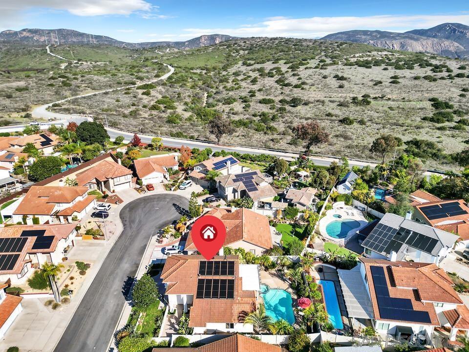 Beautifully updated home on a quiet Tierrasanta cul-de-sac just minutes from Mission Trails. Inside, you’ll find dual-pane windows, hardwood floors, plantation shutters, a cozy fireplace, and an expanded kitchen/dining area with a Thermador 5-burner cooktop, granite island, wine fridge, and custom soft-close cabinetry with specialty storage. The primary suite offers crown molding, upgraded doors with crystal hardware, wood flooring, and a remodeled bath with travertine tile, custom shower, and walk-in closet. Optional 4th bedroom includes both a door and closet. The backyard is an entertainer’s dream with a sparkling pool, mature landscaping, and spacious patio areas. Centrally located near top schools, parks, shopping, and major freeways—this turnkey home offers the perfect blend of privacy, comfort, and convenience in one of Tierrasanta’s most desirable neighborhoods.