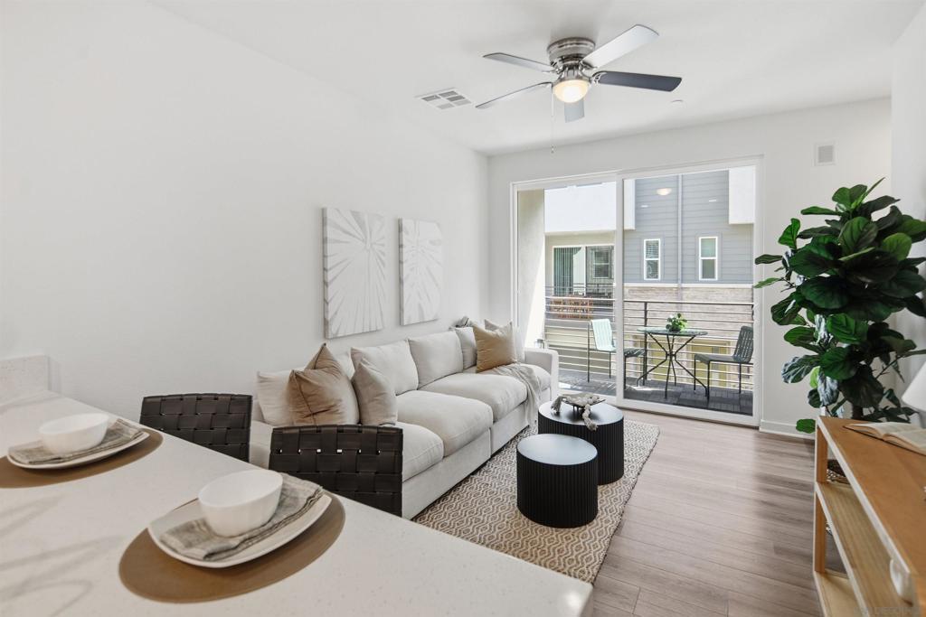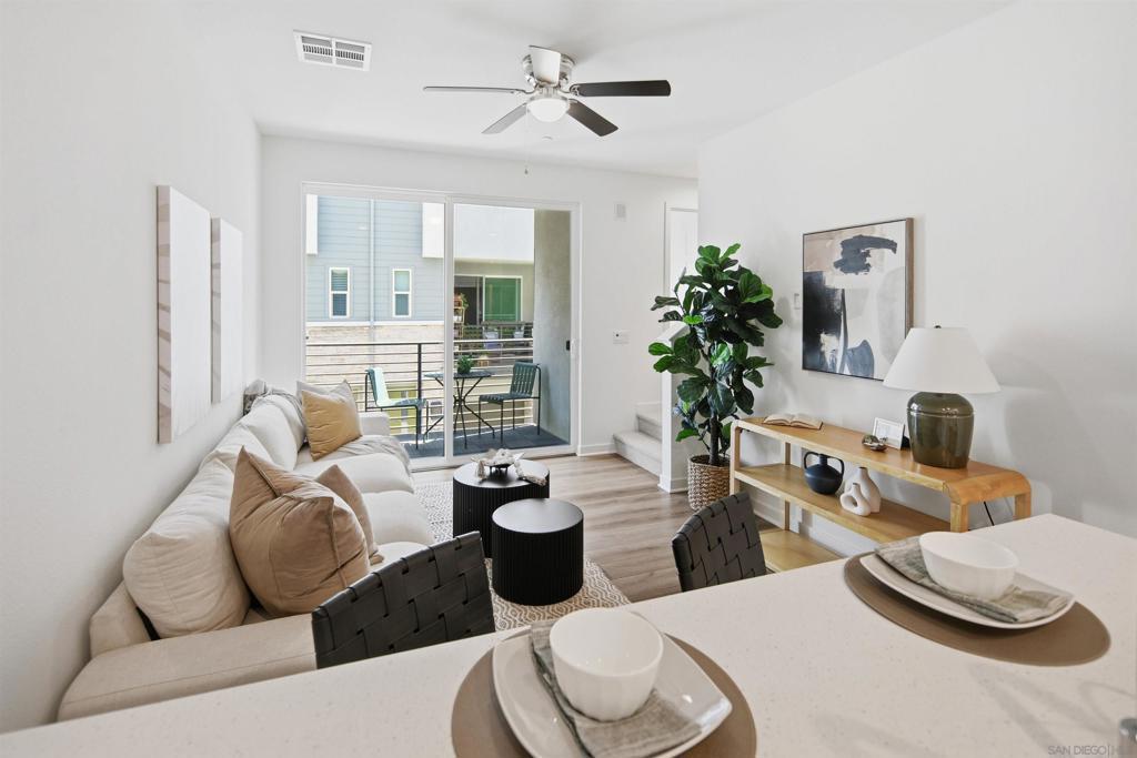 Modern Living At Marquee Welcome home to this stylish one bedroom plus loft, 1.5 bath residence in the highly desirable Marquee at Civita. Designed with modern living in mind, this light filled home features an open concept layout with luxury vinyl plank flooring throughout the main living level and brand new plush carpet on the stairs and upper floor for added comfort. The contemporary kitchen anchors the space with sleek cabinetry, stainless steel appliances, gas range, quartz countertops, and a spacious peninsula that flows seamlessly into the living area and out to your private patio, creating the perfect setup for entertaining or relaxing indoors and out. Upstairs, the primary suite offers a peaceful retreat complete with an ensuite bathroom, dual vanity, and generous walk in closet. The versatile loft provides endless possibilities and works beautifully as a home office, guest space, or creative studio. A convenient half bath on the main level adds functionality, while the attached oversized one car garage offers excellent storage and everyday ease. Located in one of San Diego’s most vibrant master planned communities, this thoughtfully designed home delivers modern comfort, flexible living space, and an unbeatable lifestyle. A rare opportunity to own a beautifully appointed residence in Civita. Civita in Mission Valley Marquee is a contemporary residential community located within Civita, Mission Valley’s vibrant and thoughtfully designed master planned neighborhood. Known for its walkable layout and lifestyle focused design, Civita offers residents everyday convenience with a mix of restaurants, boutique shops, a veterinary clinic, and LA Fitness, all just steps from home. One of the standout benefits of living at Marquee is its close proximity to The Row, Civita’s highly anticipated retail and dining destination, anchored by Jimbo’s Naturally. This will be a go to hub for organic groceries, dining, and neighborhood gathering, all just a very short walk away. Just beyond The Row sits the Civita Recreation Center, where residents enjoy resort style pools, spa, fitness center, BBQ areas, lounges, and community spaces designed for both relaxation and connection. At the heart of the neighborhood is Civita Park, an expansive green space featuring walking trails, gardens, amphitheaters, courts, and open lawns that host community events year round. Centrally located in Mission Valley, Civita offers easy access to beaches, downtown San Diego, Snapdragon Stadium, and major freeways, creating a lifestyle that balances urban convenience with outdoor living.