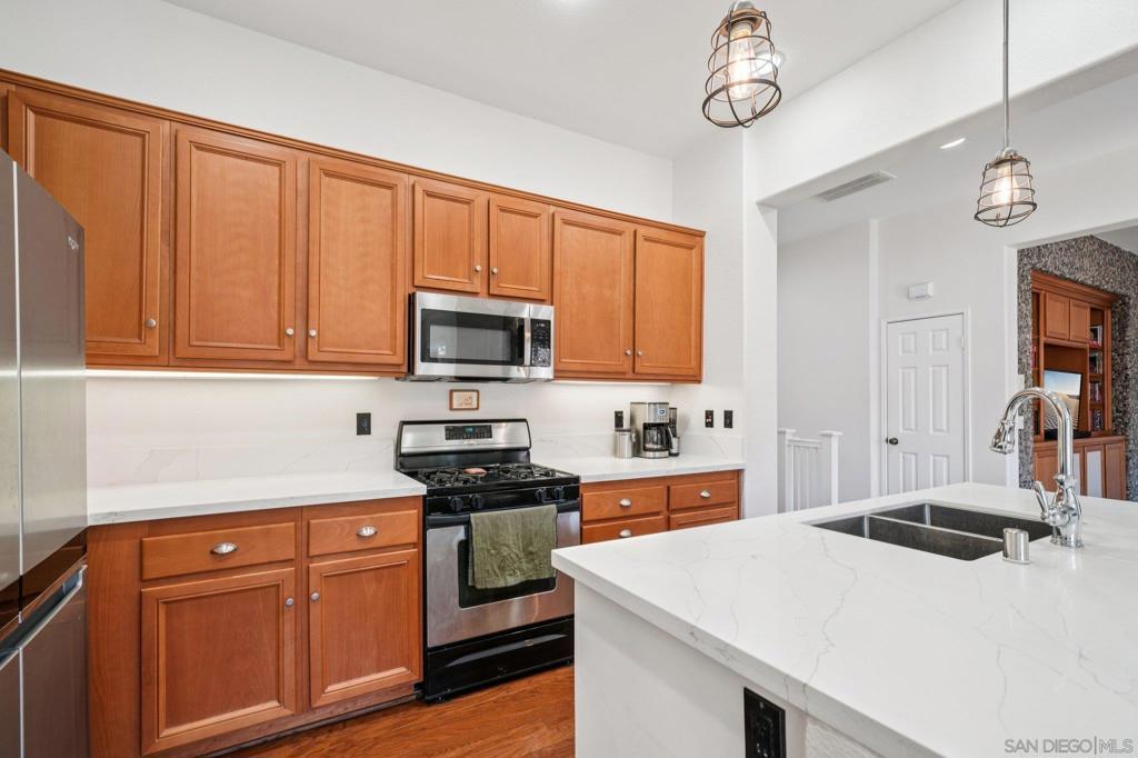 Perfectly positioned Townhome within the vibrant Morgan’s Corner community of San Elijo Hills, this beautifully maintained residence features a newly installed HVAC system and a new tankless water heater, offering modern efficiency and year-round comfort. Just moments from the Town Square, enjoy walkable proximity to popular dining spots, a brewery, wine bar, boutique shops, and top-rated schools—all within a true neighborhood setting, along with access to the community pool and spa. Inside, an open floor plan creates a sense of ease and connection, with the main living spaces, bedrooms, and bathrooms thoughtfully arranged on a single level for maximum comfort. The light-filled living room opens to a private balcony, ideal for morning coffee or evening relaxation. The beautifully appointed kitchen features a large island with breakfast counter seating, quartz countertops, stainless steel appliances, and recessed and pendant lighting that adds both style and function. The spacious primary suite is thoughtfully positioned on the opposite side of the home from the secondary bedroom, offering enhanced privacy. It serves as a serene retreat with a walk-in closet and a well-appointed ensuite bath. Additional highlights include soaring ceilings that enhance the airy feel, a custom loft above the entry providing flexible bonus space for a home office or creative escape, and an attached two-car garage. Move-in ready and ideally located, this home delivers the perfect blend of lifestyle, comfort, and community in one of North County’s most sought-after neighborhoods.