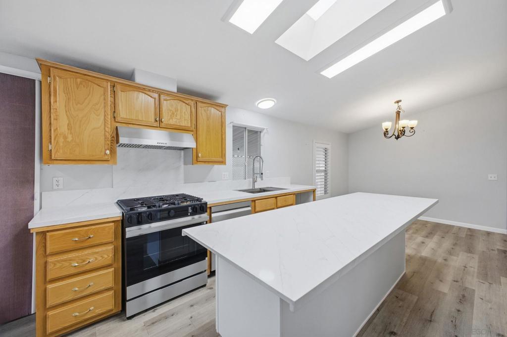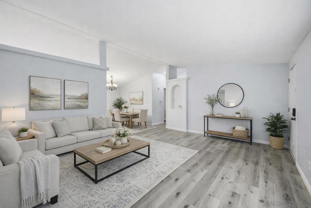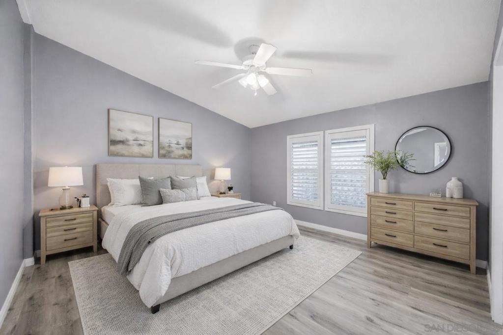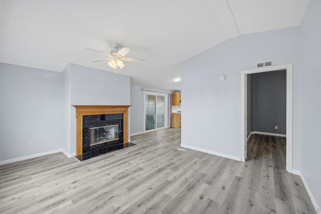 Welcome to this private corner unit located at the end of the community, offering added privacy and convenient parking access. This remodeled 3-bedroom, 2-bath home combines comfort, functionality, and a well-designed layout within the gated Rancho Mesa 55+ community. As you enter, you’re greeted by an open floor plan featuring the living room, dining area, and upgraded kitchen. The home includes updated flooring throughout, along with a remodeled kitchen offering ample cabinetry, modern appliances, and a center island suitable for meal preparation and entertaining. The layout provides separation of space, with two bedrooms and a full bathroom positioned on one side of the home. On the opposite side, an additional living area with a fireplace offers flexibility for a second lounge, office, or entertainment space. Additional features include a pantry, dedicated laundry room, and an existing solar lease (buyer to assume) currently at approximately $170/month. The outdoor area offers space for seating or entertaining, and the corner location allows for improved privacy and parking convenience. The Rancho Mesa community features gated access and well-maintained common areas.