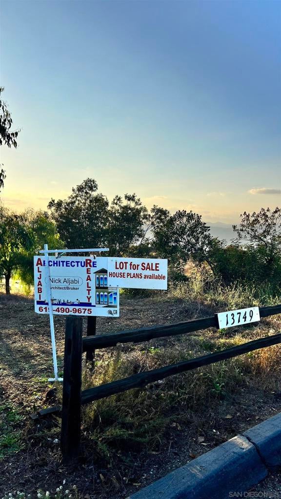—- VACANT LAND -— Country living, yet City close.. Discover the perfect canvas for your dream home at this exquisite piece of land, nestled in the heart of the picturesque Jamul... Incredible location on very private 1.33 acres adjoining wildlife preserve with spectacular views .. << PANORAMIC VIEWS >> with Approved plans for 5,504 SF Custom designed house .. complete Architectural & Engineering Documents - Plenty of Room to add an ADU up to 1,200 SF .. Approved for Septic System .. Zoning allows an attached Garage of up to 1,500 SF .. PLUS .. a detached Garage of up to 3,000 SF ..You can use your imagination regarding how to maximize the use of those structures.. LOCATION : 13749 Calle Del Sol Jamul, CA 91935 Inside Exclusive Vista Diego Gated Community, no HOA .. only Road maintenance agreement at $365/Year .. Dead-end Cul-De-Sac Road, quite, Safe, & serene environment .. Ocean views on a clear day.. Only 8 minutes from Rancho San Diego .. Listing Broker/Architect == Nick Aljabi == can assist with any Dream House Plans, Design, and Permits process.. Property offers an unparalleled opportunity to possibly create a luxurious custom home that captures the essence of peaceful living while being conveniently close to modern amenities.. Click on 'Virtual Tour Link2' link for a 3D Animation Panoramic overview of the Site and its surroundings .. Other Fees Reflect Annual Road Maintenance Agreement .. NOTE-- House Plans were previously approved then expired, but not Permitted due to COVID -- updated Plans need to be resubmitted for Plans re-Check based on current codes. ----- BONUS TO THE BUYER WITH ACCEPTED OFFER ----- 5 Hours of of Complimentary Courtesy Consultation with a California Licensed Architect for Custom House Planning & Design ..