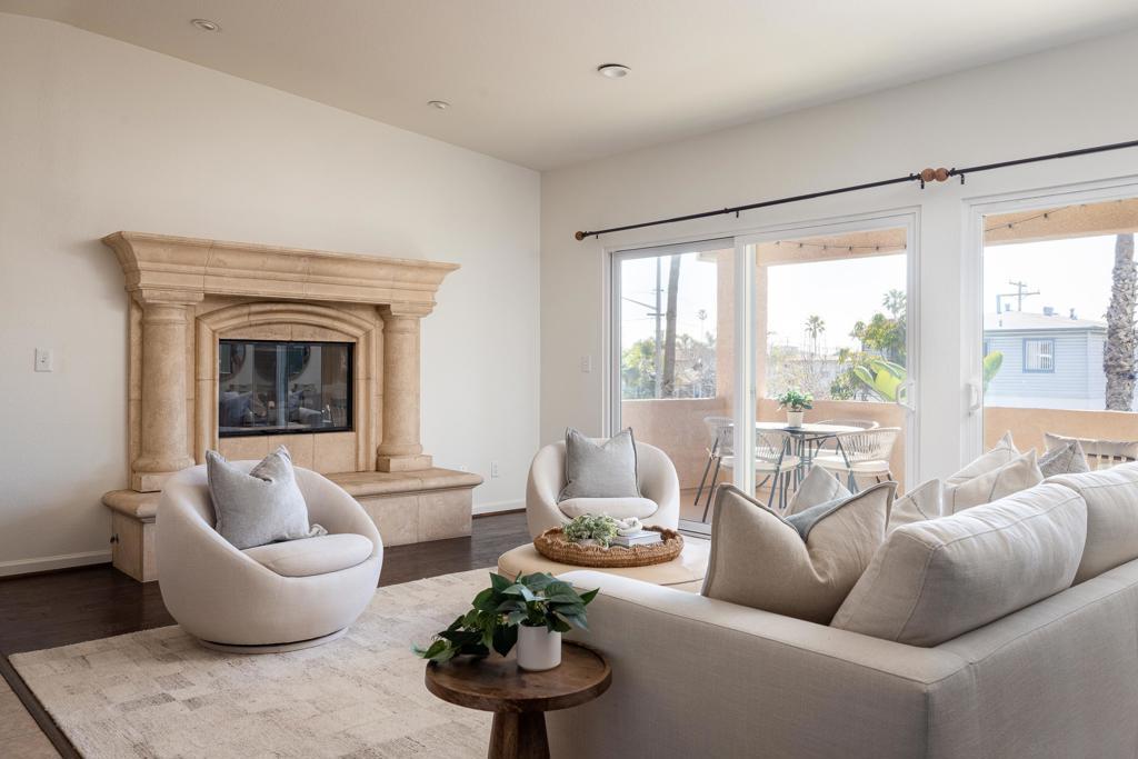 Live the South Oceanside lifestyle the way it’s meant to be — close to the beach, your favorite coffee shop, and the laid-back energy that makes this neighborhood so magnetic. This spacious 2,716 sq ft home features 4 bedrooms and 3.5 baths and lives like a detached residence. What truly sets it apart is the flexibility: with two separate entrances and laundry on both levels, the upstairs and downstairs can function as two distinct units if desired. Whether you’re thinking multigenerational living, guest quarters, or income potential, the layout gives you options. Upstairs is the heart of the home. The open-concept design connects the living room, dining area, and kitchen into one bright, welcoming space that feels open yet comfortable. The home has been freshly painted throughout, creating a clean, cohesive look. Natural light pours in thanks to thoughtfully placed light tubes, filling the upstairs living area with a bright, airy feel throughout the day. The kitchen has been updated with brand-new countertops and a modern backsplash, complemented by stainless steel appliances, a walk-in pantry, and generous prep space. The flow to the dining area and outdoor patio makes entertaining effortless and everyday living feel easy. The upstairs primary suite offers plantation shutters, dual vanities, a spacious shower, and a walk-in closet. A dedicated laundry room and powder bath complete this level. Downstairs adds even more versatility, featuring two en-suite bedrooms plus an additional large bedroom with dual closets and a statement fireplace. With its own entrance and laundry area, this level can comfortably operate as a separate living space. Additional highlights include recessed lighting, engineered hardwood floors, new carpet, plantation shutters, and an oversized two-car garage with ample storage. And don’t forget the rooftop deck — your private perch to soak in ocean breezes and sunset skies. From checking the waves at Cassidy, grabbing coffee at Revolution Roasters, picking up surf wax at Surfride, or grabbing a burger at Tanner’s Prime Burgers — it’s all just steps from your front door. Flexible. Coastal. Full of possibility. South Oceanside living at its best.