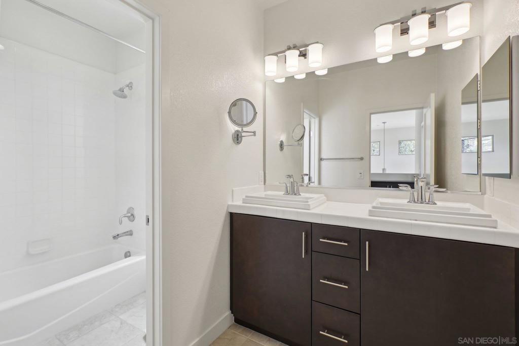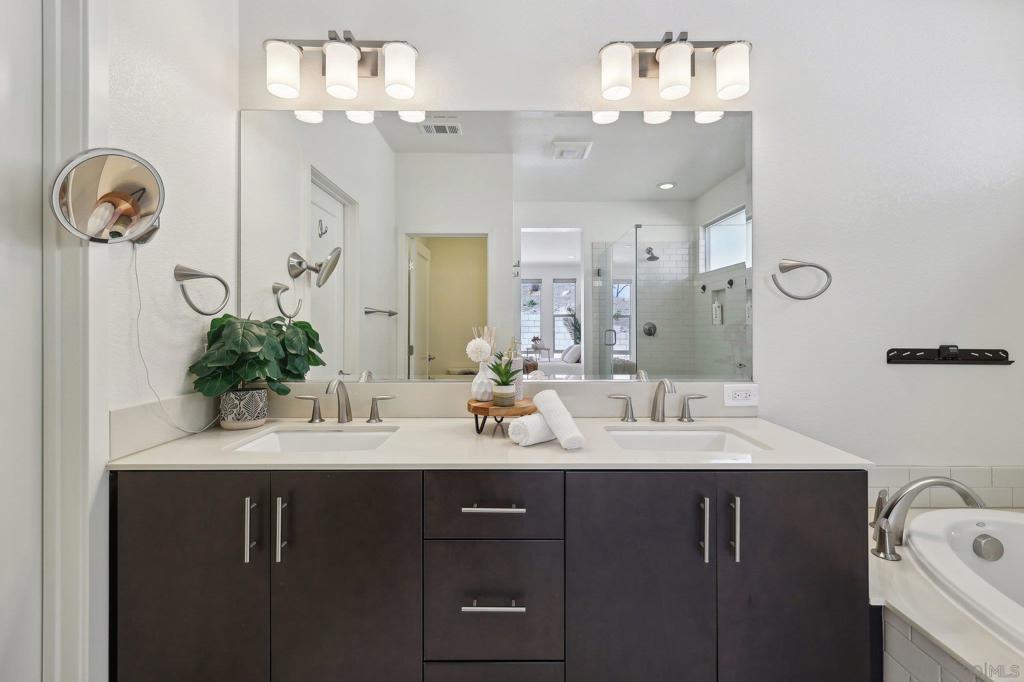 Stylish contemporary home in a desirable gated community with stunning valley views. Built in 2015, this 4-bedroom, 3.5-bath residence offers 2,576 sq. ft. of bright, open living space with soaring ceilings and a functional open-concept layout. The first floor features a private primary suite plus an additional en-suite bedroom, ideal for guests or multi-generational living. Upstairs includes two additional bedrooms offering comfort and privacy. The chef’s kitchen showcases a built-in refrigerator, granite countertops, and premium cabinetry, perfect for everyday living and entertaining. Enjoy seamless indoor-outdoor living in the spacious backyard with breathtaking views. Fully paid-off solar system adds energy efficiency and long-term value. Conveniently located near shopping, dining, freeways, and major tech hubs including Qualcomm, Google, and UCSD.