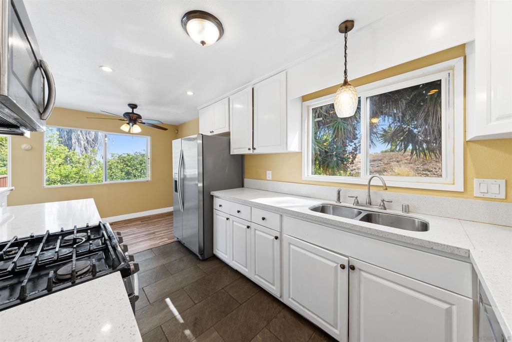 Welcome to 8808 Leigh Avenue, a beautifully maintained two-level home in Spring Valley! This 4-bedroom, 2-bathroom residence offers comfort, space, and great entertaining potential. As you enter, you are greeted by a bright formal living room with recessed lighting. The bathrooms and kitchen appliances have been updated, and all windows were replaced in 2017. The home also features fresh interior paint completed in 2025. French doors lead from the living room to a private balcony where you can enjoy city views and fireworks. Additional highlights include a spacious 573 sq ft basement and a 303 sq ft covered patio—perfect for entertaining or relaxing outdoors. This well-kept home is conveniently located near shopping, dining, and entertainment, with easy access to major freeways. Don’t miss this fantastic opportunity to own a move-in ready home with so much to offer!