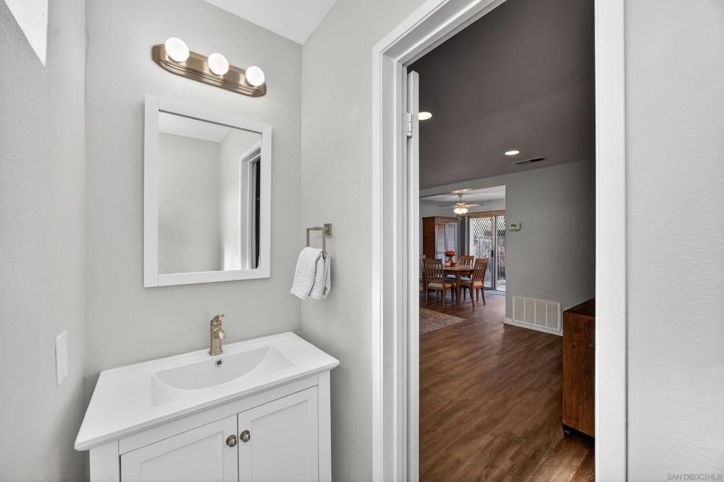AMAZING, BRIGHT and move-in-ready, VA approved townhome!! Centrally located only 20 minutes from North Island base and a quick hop onto the 8 and 67 freeways. A full 2-car garage connects to a spacious, private back patio creating a single family home vibe. Updated, new shower and tub upstairs and vaulted ceilings in the bedrooms make this townhome PERFECT for your first home or an investment property. One of the best locations in the whole complex, your front yard is a huge, expansive green space, just right for pups, kids or simply hanging out on lawn chairs. Enjoy a swim in the pool or relaxing dip in the jacuzzi after a hard day - then watch the sun set from the balcony off the primary bedroom. You do NOT want to miss out on this one. No neighbors above or below - this unit is the best!