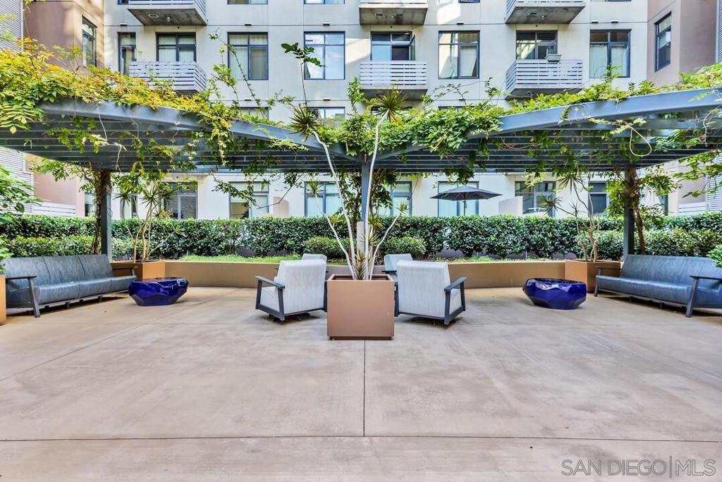 One-of-a-kind southwest corner loft at M2i featuring panoramic city views, floor-to-ceiling windows, and an expansive open layout. The flexible floor plan was designed without enclosing the second bedroom, creating a generous flow of space filled with natural light. The owners have explored building out the second bedroom, and if a buyer prefers a traditional two-bedroom layout, the sellers are open to covering the cost of this option. The home was upgraded from top to bottom. The kitchen and baths feature designer quartzite counters and sleek porcelain tile. The living areas offer authentic hardwood floors, upgraded fixtures, and custom window coverings. Central AC provides strong climate control throughout the unit. The layout supports multiple uses including a home office or guest space. The building offers fast wiring options for remote work. Oversized windows bring in natural light throughout the day and enhance the corner exposure. Residents enjoy top-tier amenities: a fully updated fitness center with brand-new equipment, a lush courtyard, and a large rooftop deck with BBQs and a fire pit - perfect for entertaining. The home includes two reserved underground parking spaces, and the HOA supports EV charger installation. The location is one of the best in East Village. The building sits 2 blocks from Petco Park and close to restaurants, coffee shops, fitness studios, and the waterfront. Walk Score, Transit Score, and Bike Score are among the highest in Downtown, which attracts buyers who want a connected and walkable lifestyle.