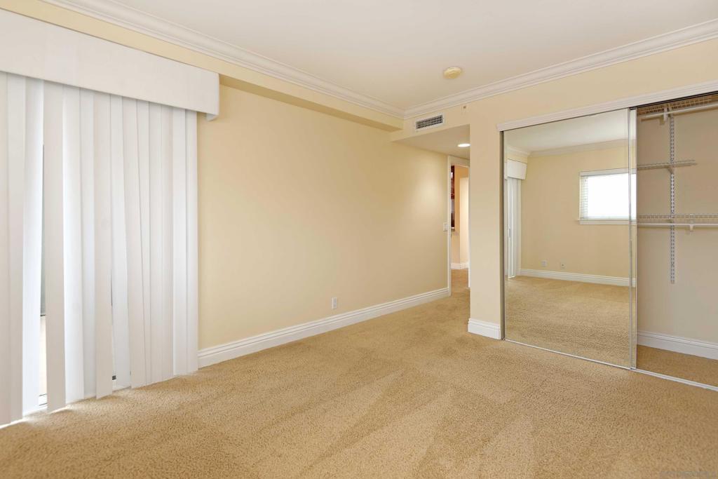 Single level 2 bedroom, 2 bath 938 square foot penthouse pied-a terre in the heart of La Jolla Village in Bella Capri with an assigned underground parking space and an interior private laundry. The efficient kitchen has stainless steel appliances and a gas stove top, custom maple cabinetry and granite counter tops. The master suite has a sliding door to the balcony with a view of the night lights from Mt. Soledad. The guest bedroom has a peek of the ocean and a walk-in closet. There are ceiling fans and lots of natural light throughout. This condo is ideal as a primary home, rental or second home. Come see for yourself.