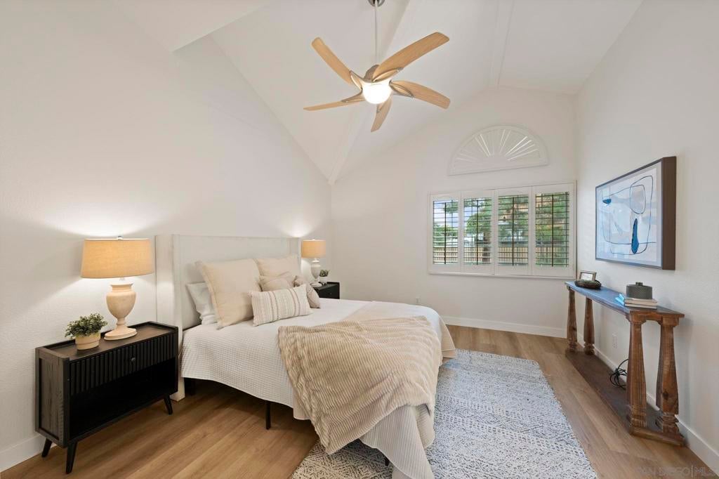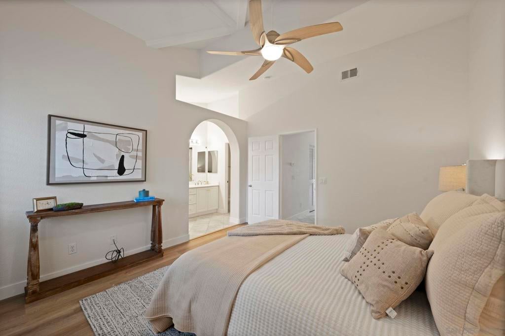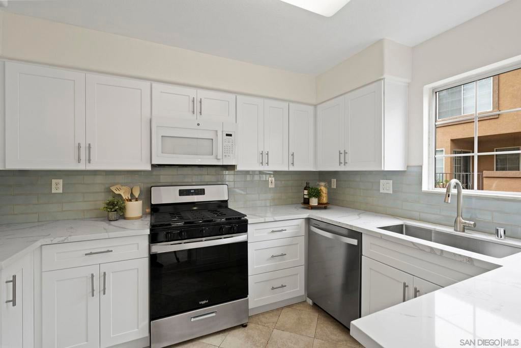 Highly desirable and centrally located in the heart of 92130—one of San Diego’s most sought-after zip codes, known for its top-rated schools! This bright and airy home in Crest at Del Mar features vaulted ceilings in the living room, two primary suites with en-suite bathrooms, and a convenient half bath on the main level. Enjoy a charming balcony off the breakfast nook and an open-concept space that seamlessly combines dining and a flexible workspace. The attached two-car garage offers oversized additional storage space. Recent upgrades include fresh interior paint and new luxury vinyl plank (LVP) flooring. The chef’s kitchen is beautifully appointed with quartz waterfall countertops, white shaker cabinetry, stainless steel appliances, and a designer tile backsplash. Residents enjoy resort-style amenities, including a swimming pool, spa, and fitness center. The low HOA fee covers water and trash. Ideally located near premier dining, shopping, and entertainment at Del Mar Highlands Town Center, One Paseo, and San Diego’s world-famous beaches.