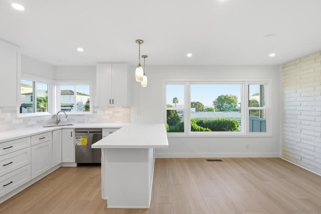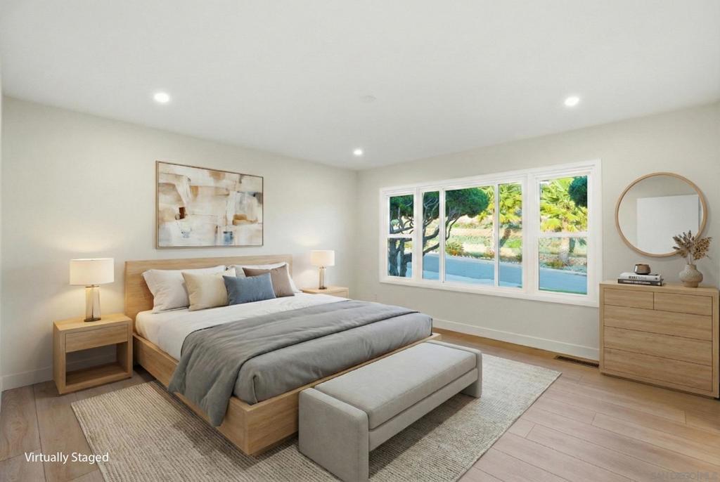 LIKE NEW RARELY AVAILABLE SOUTHWEST FACING HOME WITH VIEWS OF OCEAN AND MISSION BAY IN A FABULOUS LOCATION ON A QUIET CUL DE SAC! Clean, crisp, contemporary mid-century design and move in ready. The home features a brand new large open kitchen design with spectacular views of city lights, the Coronado bridge, ocean and bay. All new kitchen cabinets, countertops, backsplash, new appliances, under cabinet lighting and a comfortable breakfast bar. The adjoining large living room has a large window with new window tinting. New LVP flooring, new bathrooms, new windows in kitchen, bedrooms and bathrooms. New lighting, updated electrical throughout with new GFCI's. New paint, sewer pipes and gas lines. New exterior drainage and irrigation. New exterior lighting. Newer roof and water heater. New whole house high speed Internet and WIFI make it perfect for working at home or streaming services. The lower level includes a private fourth bedroom with a full bath and a separate entrance-ideal for guests, a home office, or multi generational living. Basement with tons of storage. Large windows in all rooms allow for plenty of light and open the house to cooling hillside breezes throughout the day. Located in La Jolla on the south west side of Mt. Soledad in the La Jolla School District. This home places you just minutes from world class restaurants, shopping, sandy beaches, surf spots, neighborhood coffee shops, the boardwalk, Bird Rock and La Jolla Shores. Your turn key dream home awaits!