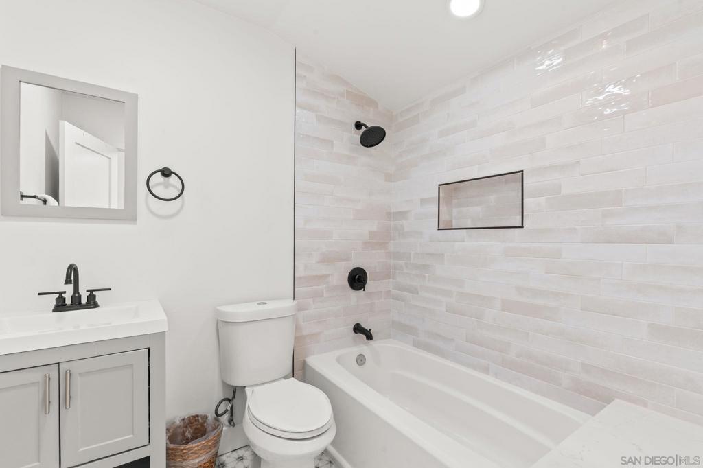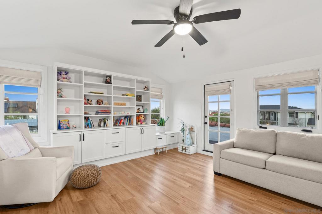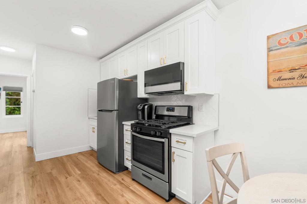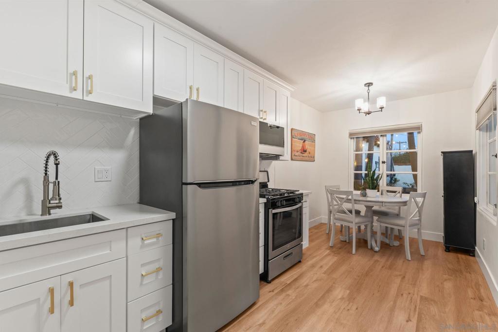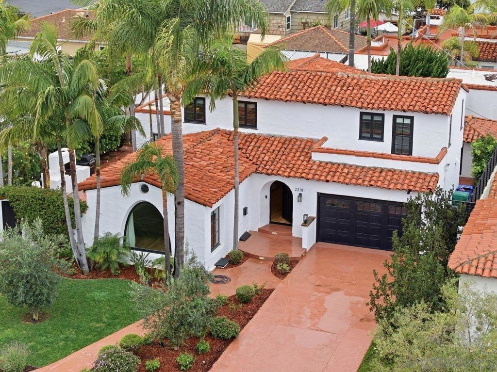 This breathtaking Loma Portal residence seamlessly blends understated minimalist elegance with timeless Spanish character. Set on an expansive 7,000 sq. ft. lot and just moments from Liberty Station and top-rated schools, the home offers an exceptional coastal lifestyle. A sun-drenched formal living room is framed by a dramatic arched picture window set against a tiled accent wall, while rich wood flooring and exposed beam ceilings create warmth and architectural distinction. A striking see-through fireplace anchors the space and transitions seamlessly into the beautifully updated chef’s kitchen, appointed with stainless steel appliances, an impressive eight-burner gas range, custom cabinetry, and a classic designer backsplash, crafted for both elevated entertaining and everyday living. Designed for comfort and flexibility, the home features three en-suite bedrooms, including a serene primary retreat on the main level complete with its own fireplace, custom walk-in closet, spa-inspired bath with tiled walk-in shower, and sliding doors opening to a peacefully landscaped private yard. Upstairs, an additional suite and a secondary bedroom with a generous view deck capture sweeping vistas of the Coronado Bridge, ocean glimpses, and city skyline. A gated courtyard enhances the indoor-outdoor lifestyle with a built-in pizza oven and fire pit, while the attached casita, featuring its own entrance, living room, kitchenette, bedroom, and full bath offers ideal accommodations for guests, office, rental or multigenerational living. Additional highlights include central air conditioning and heating, and an extended driveway accommodating up to four vehicles plus an attached 2-car garage with storage, all just minutes from Sunset Cliffs, beaches, dining, and freeway access. Don't miss the opportunity to experience the unparalleled blend of style, charm, and convenience that this home offers.