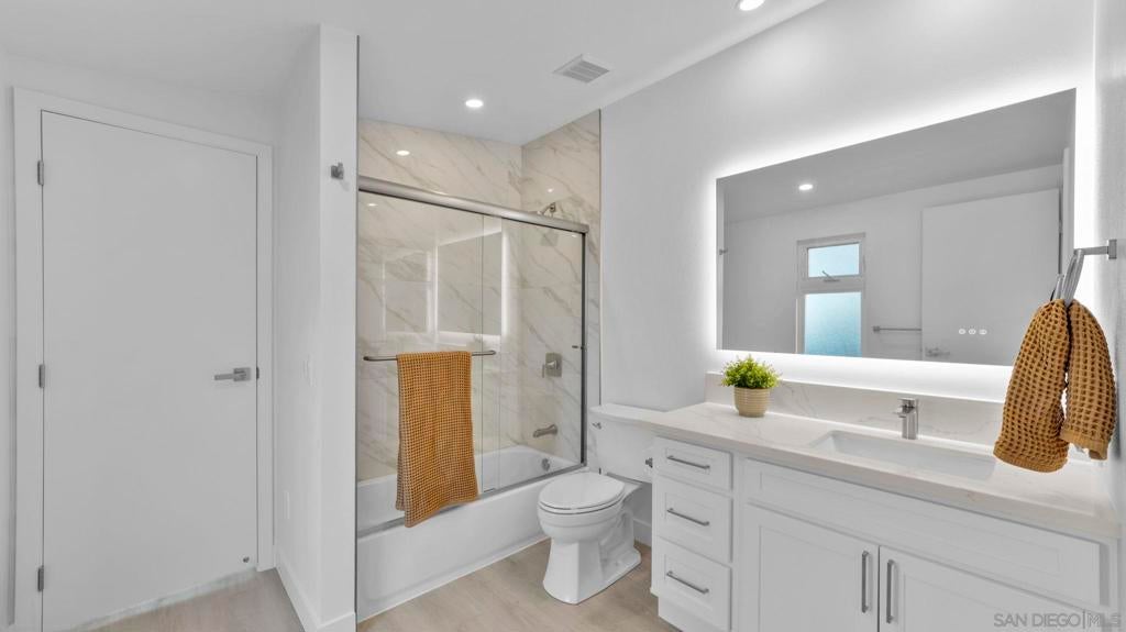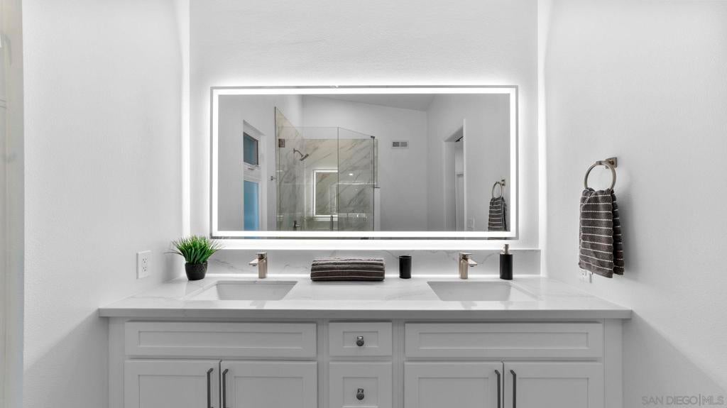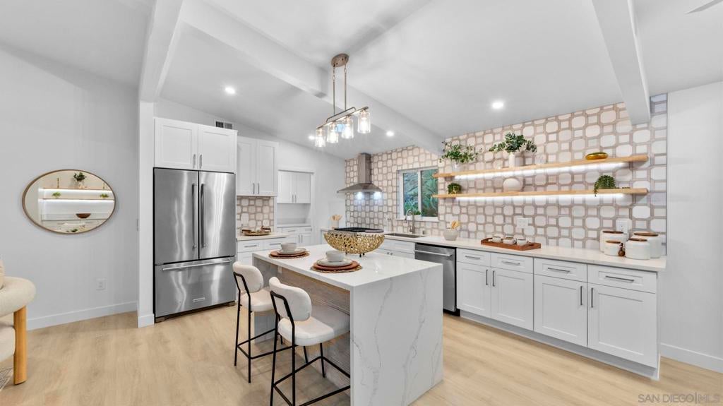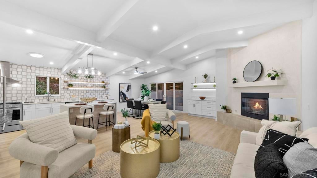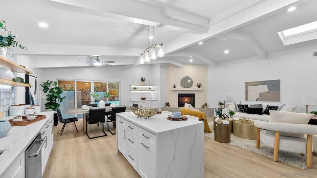 Completely renovated coastal gem with stunning Mission Bay views! Welcome to 4909 Pacifica Drive in Pacific Beach, a beautifully reimagined3-bedroom, 2.5-bath home that blends modern luxury with coastal charm. Step inside to discover brand-new luxury vinyl plank flooring, skylights that fill the living spaces with natural light, and a fresh full interior and exterior paint job. The custom kitchen shines with stainless steelKitchenAid appliances, a stylish backsplash, and ample storage, while the bathrooms boast glossy ceramic tile, LED mirrors, and new fixtures. Enjoy comfort and efficiency with new LED lighting, ceiling fans in every bedroom, a tankless water heater, and a PAID-OFF Sullivan SolarPower system. A true highlight of this renovation is the newly added, fully permitted, oversized laundry room and custom-built walk-in pantry -designed for ultimate convenience and functionality. These thoughtful additions elevate daily living with modern organization and extra spacerarely found in Pacific Beach homes. The primary suite offers a large walk-in closet and sliding glass door leading directly. Outdoors, relax andtake in bay views from the bar-top railing, relax on new turf, and entertain on fresh exterior tile patios. Every detail has been upgraded- fromthe new sewer main and drains to the new garage door. This turnkey home is a showcase of quality, design, and energy efficiency in one ofSan Diego’s most desirable neighborhoods. Experience coastal living at its finest at 4909 Pacifica Drive, Pacific Beach - where every sunsetover Mission Bay feels like home.