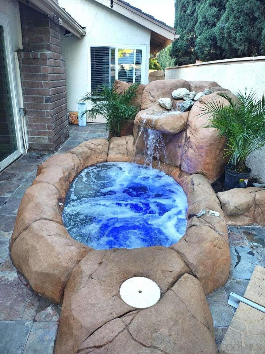 Located in the desirable Tustin community within Laurelwood HOA, this well-maintained two-story home offers 3 bedrooms, 2 bathrooms, and a versatile extra room across 1,624 square feet of living space on a 3,300 square foot lot. Built in 1973, the home features a functional and flexible layout with the primary suite conveniently located on the first level, complete with a walk-in closet and full bathroom. The spacious living room showcases dramatic cathedral ceilings and a cozy fireplace, creating an open, light-filled environment ideal for everyday living and entertaining. The upgraded kitchen features granite countertops, matching granite surfaces, recessed lighting, and elegant travertine flooring, combining durability with modern style. Also on the first floor is a remodeled two-car garage finished with epoxy-coated flooring. The second level includes two additional bedrooms, a extra room suitable for an office, media space, or guest area, and a full bathroom featuring a heated jetted soaking tub for spa-like comfort. Step outside to a private backyard retreat highlighted by an in-ground spa designed for up to eight people, complete with a relaxing waterfall feature — perfect for entertaining or unwinding at the end of the day. This home offers a rare opportunity to own in a well-established neighborhood conveniently located near shopping, dining, parks, and major commuter routes.