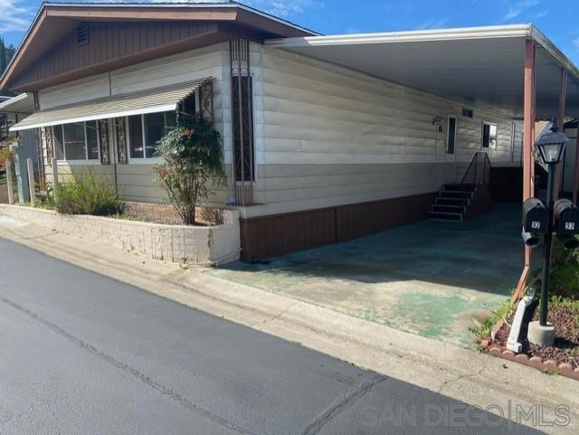 Privately located in a desirable 55+ community that is tucked away at the northern base of Mount Helix. Newer roof, dual pane windows and tankless water heater. Central A/C and heat. Open 2 Bedroom 2 bath floor plan with large living room, family room and enclosed sunroom that are all in need of updating and loving TLC! Side yard boasts a meyer lemon and tangerine tree. Private backyard and side storage shed. Possible renegotiation on space rent for new owners. This park is well maintained nicely landscaped with plenty of Guest parking. Large clubhouse with pool and jacuzzi. Park is conveniently located near major hospitals, shopping and restaurants.
