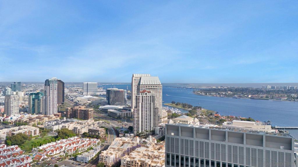 Turn-key 2 bed + den, 2 bath 23rd floor residence at The Grande South offers elevated downtown living with breathtaking panoramic views. Perched high above the city, the home captures sweeping vistas of the downtown skyline, glittering city lights, and San Diego Bay, creating a dramatic backdrop from day to night. The residence features an open-concept living space filled with natural light, expansive windows that frame the views, and a seamless flow onto the private terrace. Offered completely furnished, this is a rare opportunity for a move-in-ready luxury rental in one of Downtown San Diego’s most desirable waterfront communities. Residents of The Grande South enjoy full-service amenities, including security, concierge services, fitness center, pool and spa, and a prime location just steps from the waterfront, Seaport Village, the Gaslamp Quarter, dining, shopping, and entertainment. A perfect blend of convenience, sophistication, and iconic San Diego views.