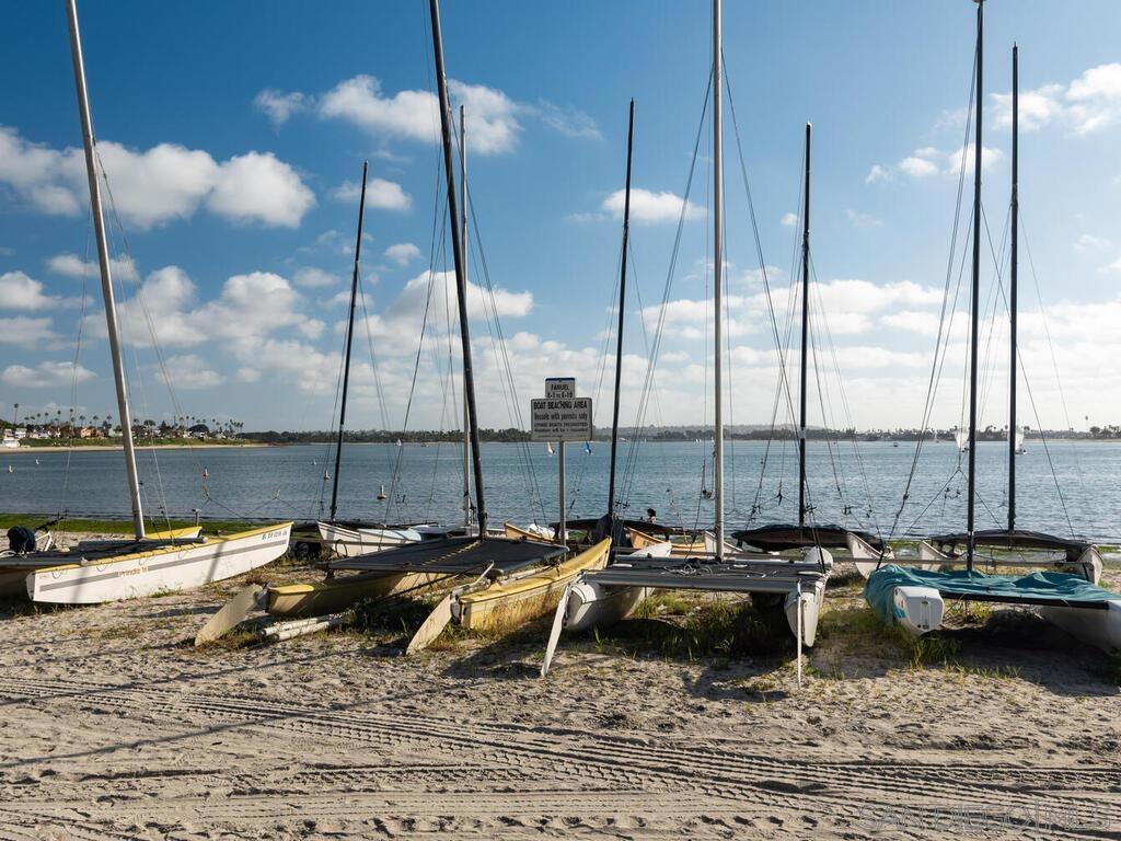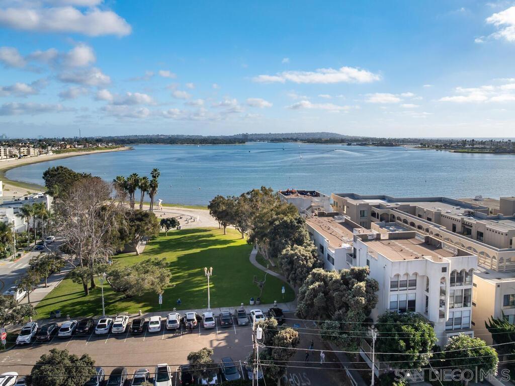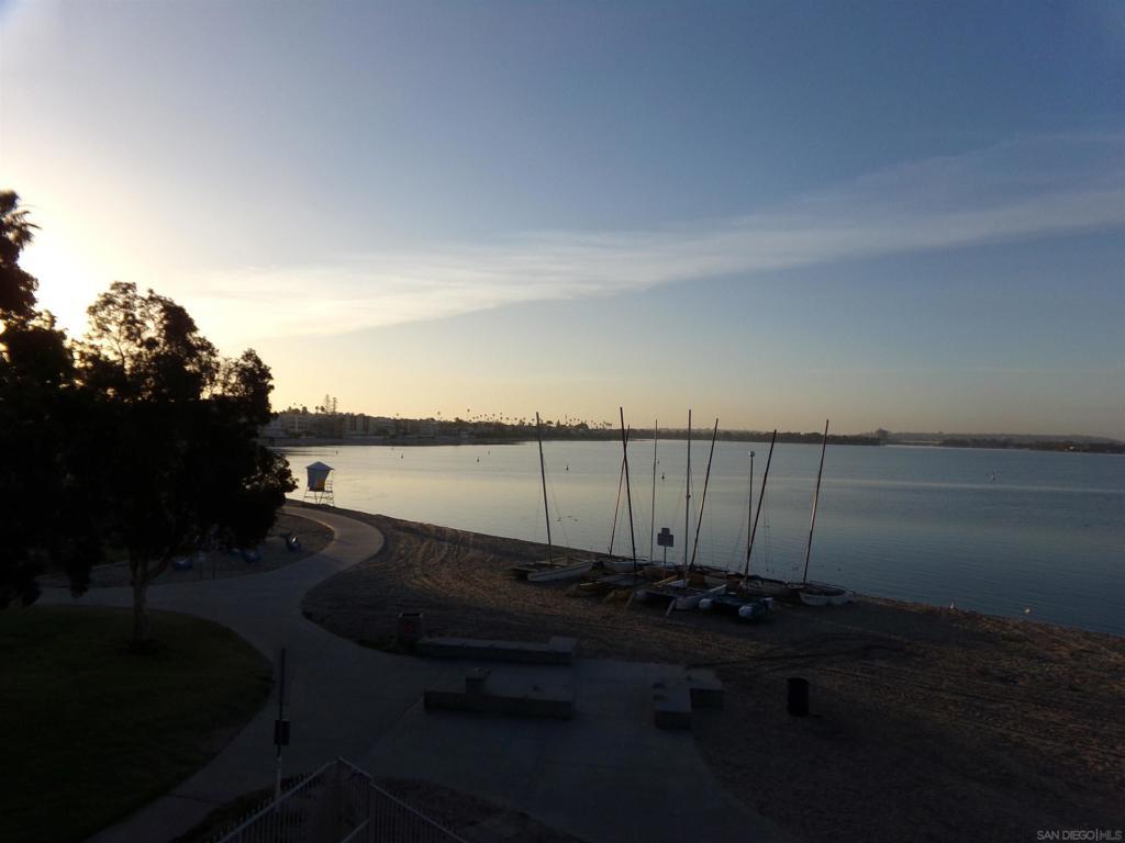 WATERFRONT unit on Sail Bay!!. Gorgeous south-facing, corner unit on the sand!! Wake up to unobstructed, sparkling bay views on Sail Bay boardwalk. This rare waterfront unit offers panoramic bay views, steps from the sand. It has not been on the market for over 30 yrs and has the best location in the project. This 2nd floor unit allows for privacy but still lets you check out all the action on the boardwalk. Unit also sides to Fanuel Park, offering additional open, green space views. This is permanent vacation living. Large, one bedroom unit that has tons of natural light, has been updated and is in move-in condition. Features include newer kitchen appliances, gas fireplace, breakfast bar, track lighting, floor to ceiling windows, hardwood and tile flooring, mirrored wardrobe doors, custom California Closet organized closets. This project is approved for short term rentals and would make an awesome AirBNB. Unit comes with one assigned underground parking space and large storage unit. Project amenities include a large spa, common laundry room & board storage. Ample guest parking at adjacent Fanuel Park. Enjoy morning coffee watching boats drift by on your private balcony & evening lights shimmering across the water, with all the energy of PB just steps away—beaches, dining, and nightlife!