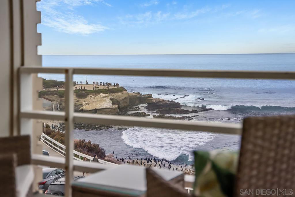Situated directly on the famous La Jolla Cove, this 2-bed 2-bath oceanfront penthouse offers breathtaking, panoramic views of the coastline, stretching as far as the eye can see. From your living room, watch sea lions bask in the sun, paragliders flying over Torrey Pines, and waves crash against the cliffside. Live an everyday vacation lifestyle, complete with a private outdoor balcony perfect for unwinding after a long day. The residence is fully equipped with high-end amenities, including a spacious walk-in closet, in-unit washer and dryer, a private garaged parking space, and access to two additional storage units. The gourmet kitchen features Viking appliances, ideal for culinary enthusiasts, while the entire space has been freshly and thoughtfully furnished. The second bedroom offers flexibility with a queen-sized bed and optional twin bed accommodations, making it perfect for guests visiting. Walk to everything that vibrant La Jolla Village has to offer, from dining and shopping to art galleries and the beach. This is truly a dream location—just bring your toothbrush and settle into the luxury of coastal living.