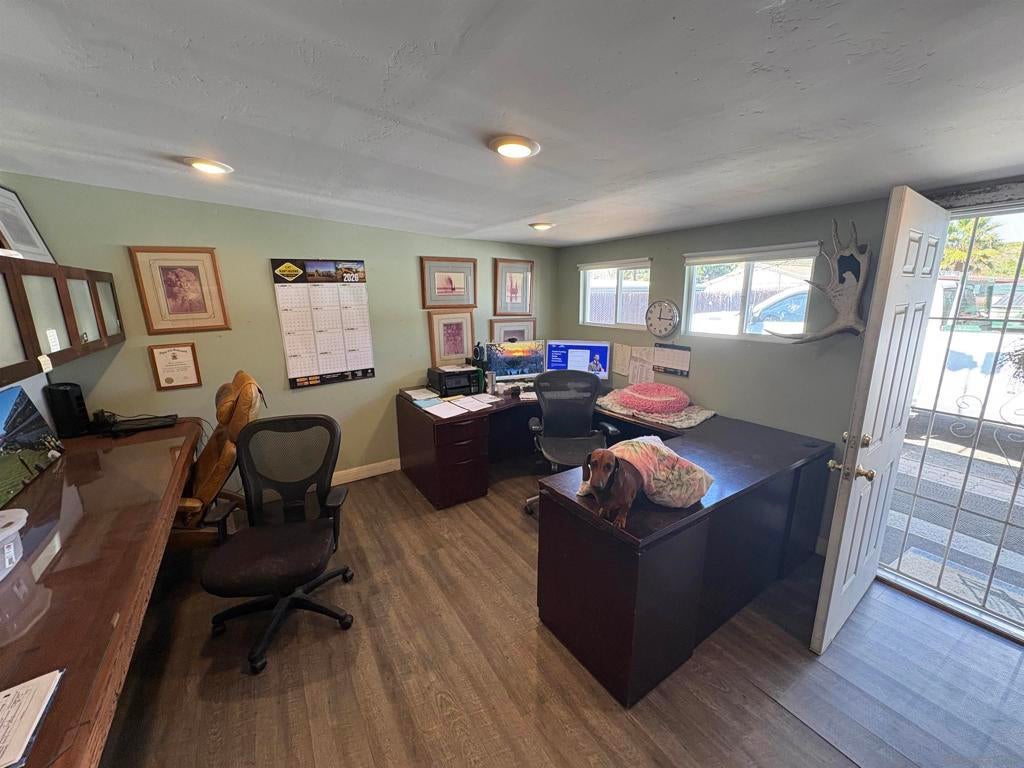 For Lease: 1,200 SF office/workshop + 12,000 SF Fenced Yard. Roughly 850 SF of Office space, 350 SF of warehouse, and 1000 SF of covered workspace. Abundant Parking