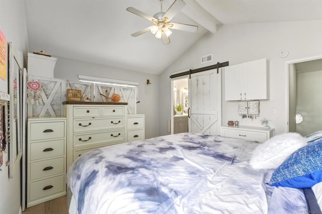 Welcome to your perfect starter or retirement gem of a home in Calavera Hills. This beauty has been extensively remodeled and sits on a premium canyon lot! This 3-bedroom home in The Crest has two bedrooms on primary floor, offers privacy, views, and true indoor-outdoor living with new pavers and turf. Updates include a fully remodeled kitchen with farmhouse sink and new appliances, luxury vinyl plank flooring, custom Italian marble tile, stone-topped vanities, newer windows and slider, and new heater/AC. The oversized primary suite features a custom barn door and built-in closet system. Enjoy the remodeled laundry area with new washer and dryer, large outdoor storage PLUS expanded and finished attic for even more storage. With a low HOA and a prime location walkable to Hope Elementary, Calavera Park, and local hiking trails, this home has it all.