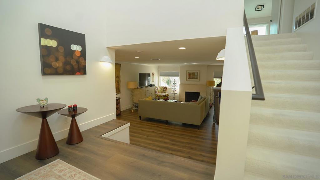 You’re welcomed by an impressive mezzanine and grand living room featuring beautiful luxury vinyl plank flooring, a stylish bar island, and a cozy fireplace that opens to a tranquil, greenscape patio — perfect for relaxing or entertaining. The newly renovated and expanded kitchen is designed for culinary inspiration, complete with a spacious center island, walk-in pantry, custom cabinetry, granite countertops and backsplash, and new windows and sliders throughout that fill the home with natural light. The large primary suite offers dual closets and a private balcony with peek ocean and landscape views — your own peaceful retreat.