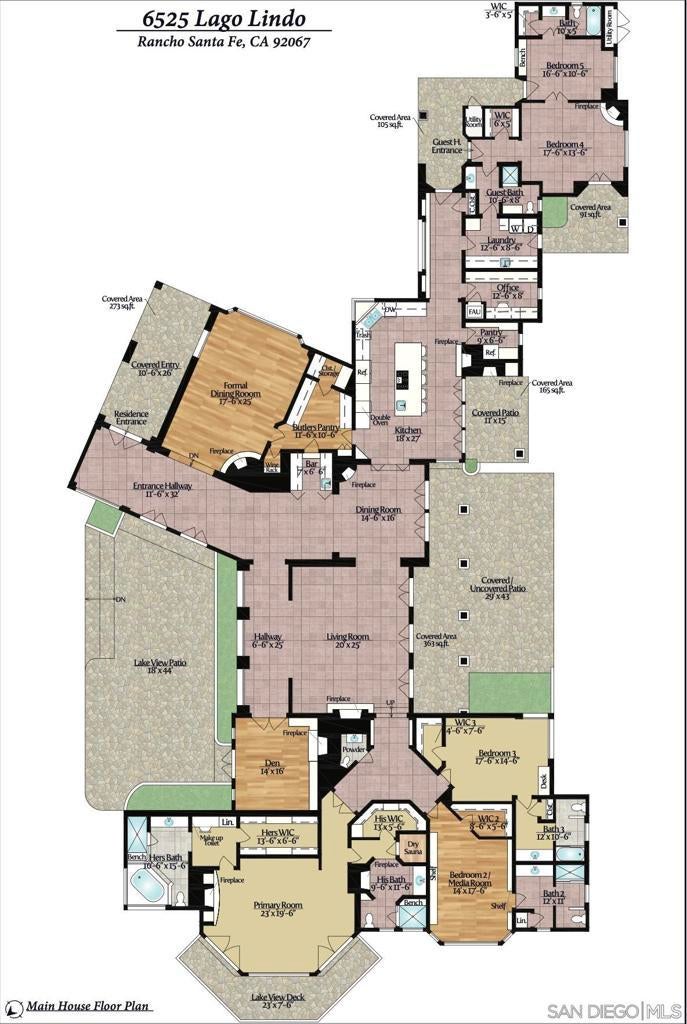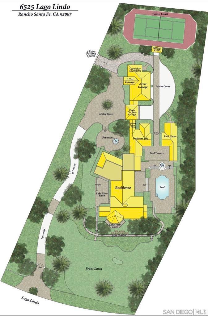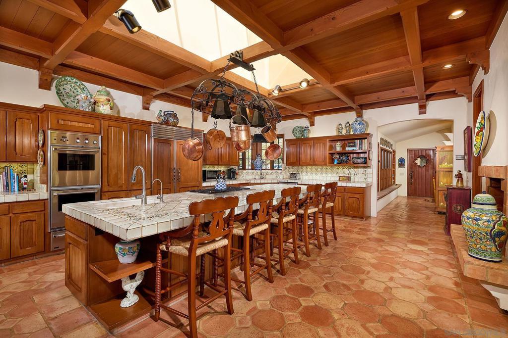 The Hahncienda: The Romance of Rancho Santa Fe. A luxurious Spanish Colonial revival style estate, perched on over 3 acres of lush landscaping. This is a rare opportunity to own an original historic Lilian J. Rice period home that seldom comes to market. The home has a pedigree that reaches back in time to the 1920’s and represents an incredible example of the Spanish eclectic-style that was synonymous with that era of Southern California architecture. Sited on over 3 acres, the estate, designed in 1927, offers breathtaking lake views and timeless elegance in the heart of historic Rancho Santa Fe’s Covenant, which today it is revered for its rural beauty, its golf and tennis facilities, equestrian lifestyle, dedicated riding and hiking trails and top rated schools. In the heart of the expansive interior is the elegant Rice-designed living room. A key feature is the Spanish-style fireplace with an oversized breast that reaches up to exposed rafters, another Rice signature design detail. The primary suite is a tranquil retreat with beautiful lake views and dramatic sunsets. Ensuite are his-and-hers bathrooms and dressing rooms, including a fireplace and sauna. The family-style kitchen features custom wood cabinetry, a fireplace and an expansive Mexican tile island with built in gas range and sink. The kitchen blends functionality and style, making it perfect for both everyday gatherings and entertaining. Adjacent to the kitchen is a butler’s pantry, food pantry, wet bar and an office. The home was expanded in the 1980's to include additional bedrooms, a caretaker’s apartment, and a resort-style cabana and remains true to its architectural heritage. With its unparalleled craftsmanship, history, first class amenities and serene setting, the Hahncienda is a rare once-in-a lifetime opportunity to own a piece of Lilian Rice’s architectural legacy.