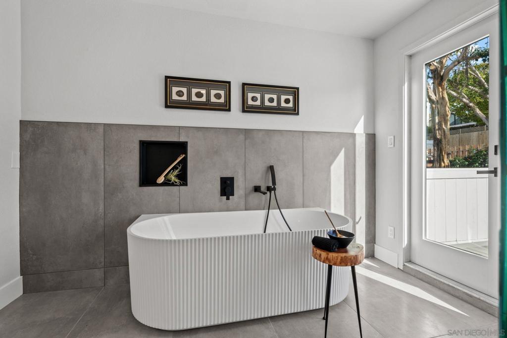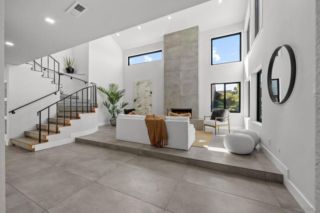Welcome to the newly rebuilt contemporary coastal home just 300 paces to the ocean in Del Mar. Designed with zero stairs from street, driveway, or garden, this ADA-friendly residence offers seamless indoor-outdoor living and flexible multi-generational potential. Expansive open-concept lower level features a supersized modern Italian kitchen with top-of-the-line oversized appliances, custom cabinetry, and dramatic entertaining space. Large openings lead to an indoor-outdoor entertainment area with built-in seating, prep counters, and natural gas for BBQ and fire features. The lower-level en-suite bedroom includes a built-in kitchenette/wet bar with separate or shared entry—ideal for a guest suite, playroom, or private quarters. All four bedrooms are en-suite with bright, ultra-modern baths. Views to boast from 2 bedrooms and upstairs! The upstairs primary retreat offers two walk-in closets, a built-in coffee/smoothie bar, a spa-style bath, and a private ocean-view deck. The laundry room is conveniently located upstairs between the bedrooms. Rear alley access provides off-street parking for 7+ vehicles and potential ocean-view ADU expansion—creating multi-unit compound possibilities. Contemporary low-maintenance desertscape landscaping is under mature trees. This is an outstanding investment, lifestyle, and expansion opportunity in a premier coastal location.