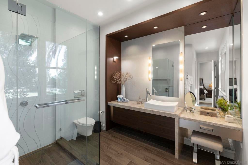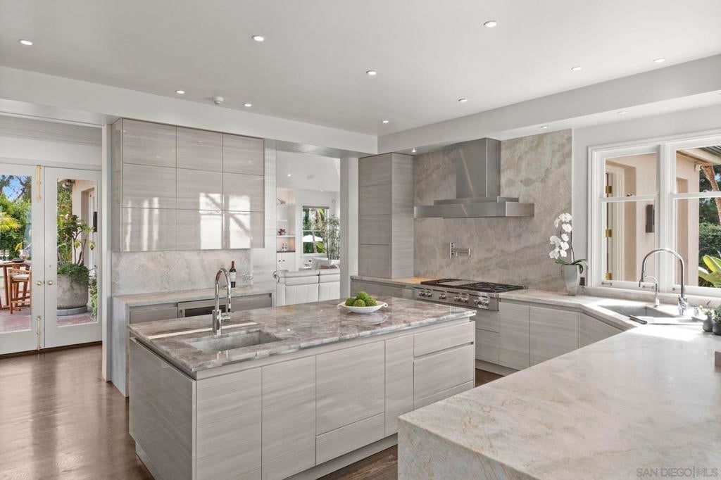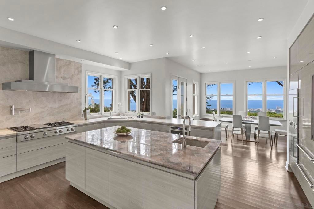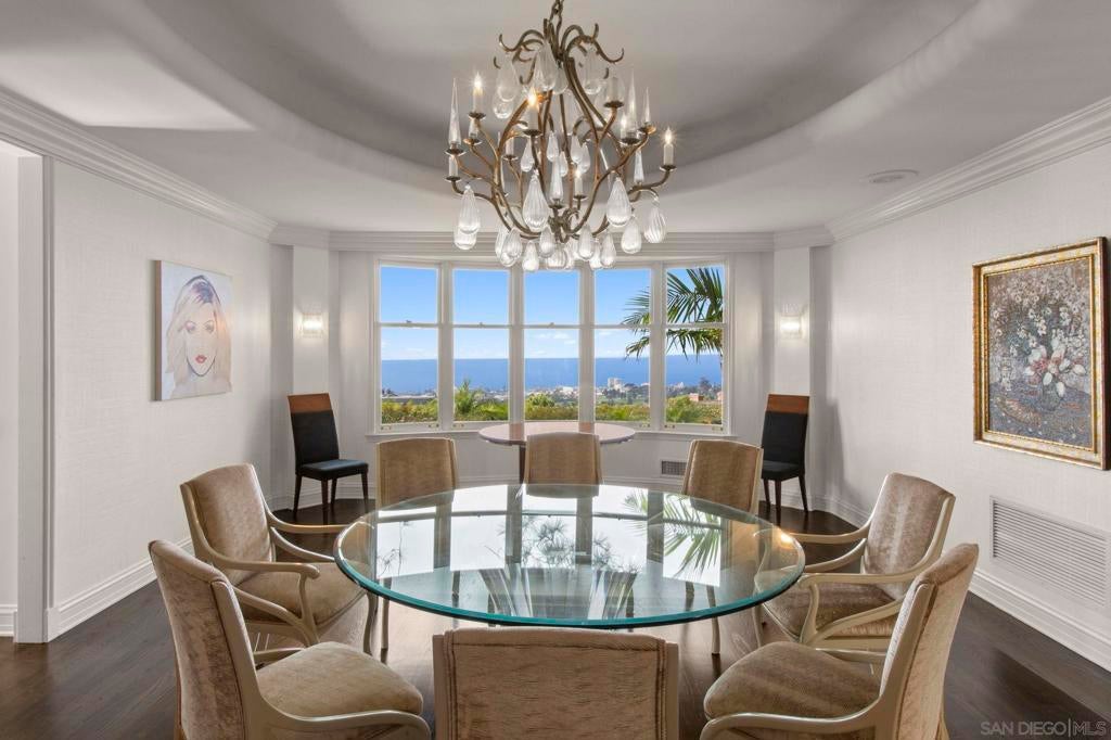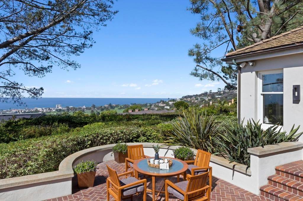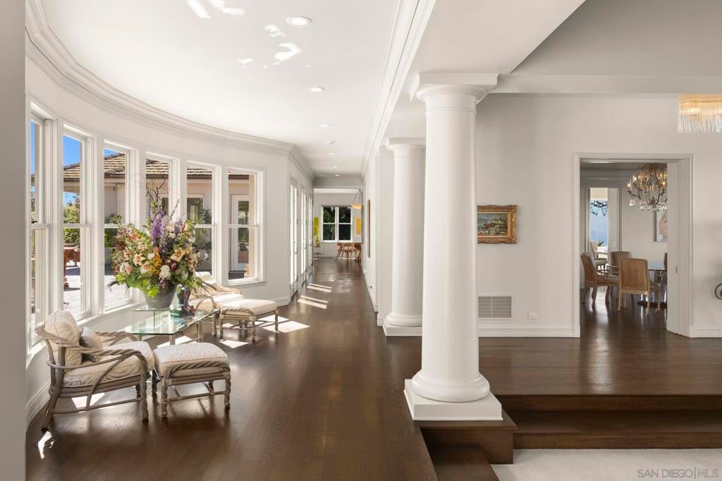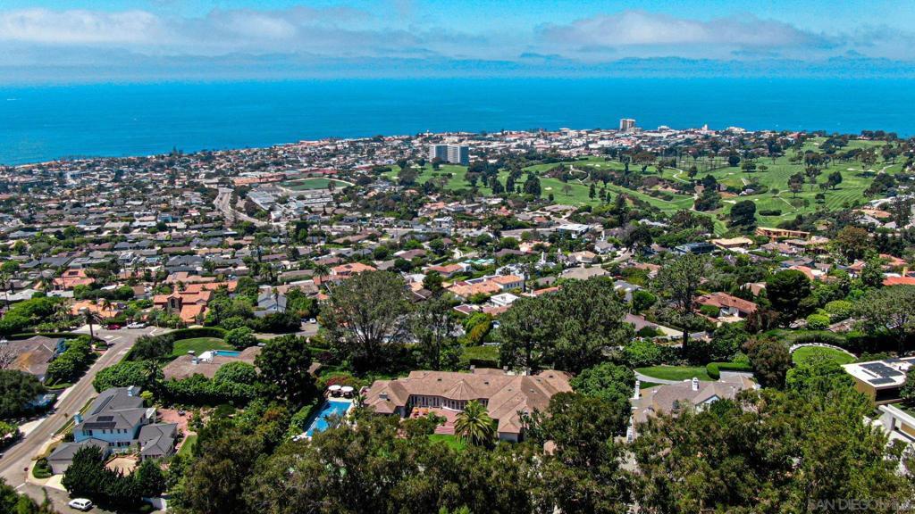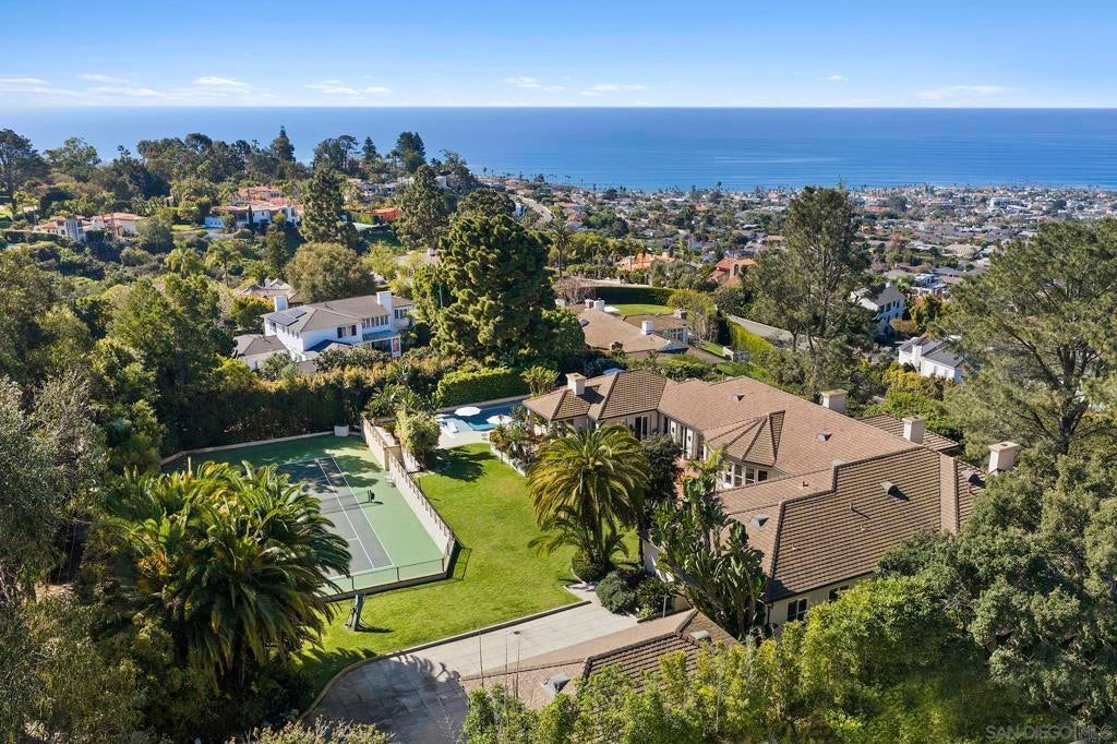 Tucked behind gates on 1.47 acres in La Jolla’s coveted Olde Muirlands, this panoramic ocean-view estate presents a rare opportunity for those seeking privacy, property and architectural substance in a premier coastal location. The single level home encompasses 7,590 square feet of volume ceilings and uninterrupted sightlines toward the Pacific Ocean and La Jolla Country Club golf course from all the primary rooms. Not offered for purchase in 35 years – an estate for the buyer who values timeless assets and the quiet confidence of a legacy property. Encompassing 7,590 square feet the floor plan is composed to accommodate large formal gatherings, as well as family friendly living, and offers 5 bedrooms, 2 offices, 5 full and 2 half baths, a custom designed gourmet kitchen with abundant views and outdoor terraces designed for gracious gathering. The grounds function as a private resort and include a regulation tennis court, pool with Baja ledge and spa, and manicured acreage provides both recreation and retreat. Dual motor courts, a four-car garage, and two gated entries underscore the property’s emphasis on discretion and security. Not offered for purchase in 35 years – an estate for the buyer who values timeless assets, irreplaceable land, scarcity and the quiet confidence of a legacy property in one of California's most desirable coastal communities.