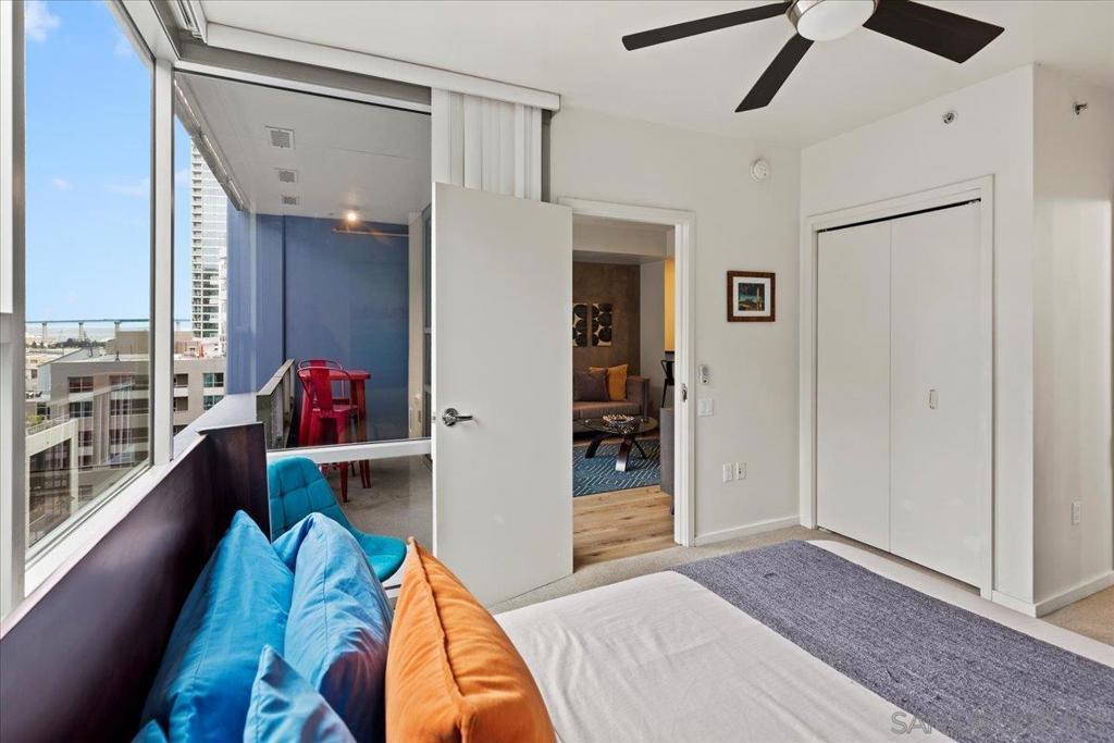 Welcome to ICON, where refined urban living meets iconic San Diego views. Perched on the 10th floor, this beautifully appointed residence is bathed in natural light while enjoying a desirable, quiet courtyard orientation with views stretching toward the Coronado Bridge and the Pacific beyond. Luxury vinyl plank flooring enhances the open-concept living space, seamlessly connecting to a generously sized private patio—perfect for morning coffee or evening city lights. The designer kitchen showcases modern fixtures, stylish finishes, and a timeless neutral palette, complementing the well-designed floor plan. Offered furnished, this residence presents an exceptional opportunity as a primary home, executive retreat, or weekend escape in the heart of downtown. Residents of ICON enjoy premier amenities including the rooftop Skybox Lounge with panoramic views, BBQ terrace, fitness center, clubhouse, movie room, and 24-hour front desk security—all just steps from Petco Park, vibrant dining, and the best of the Gaslamp Quarter.