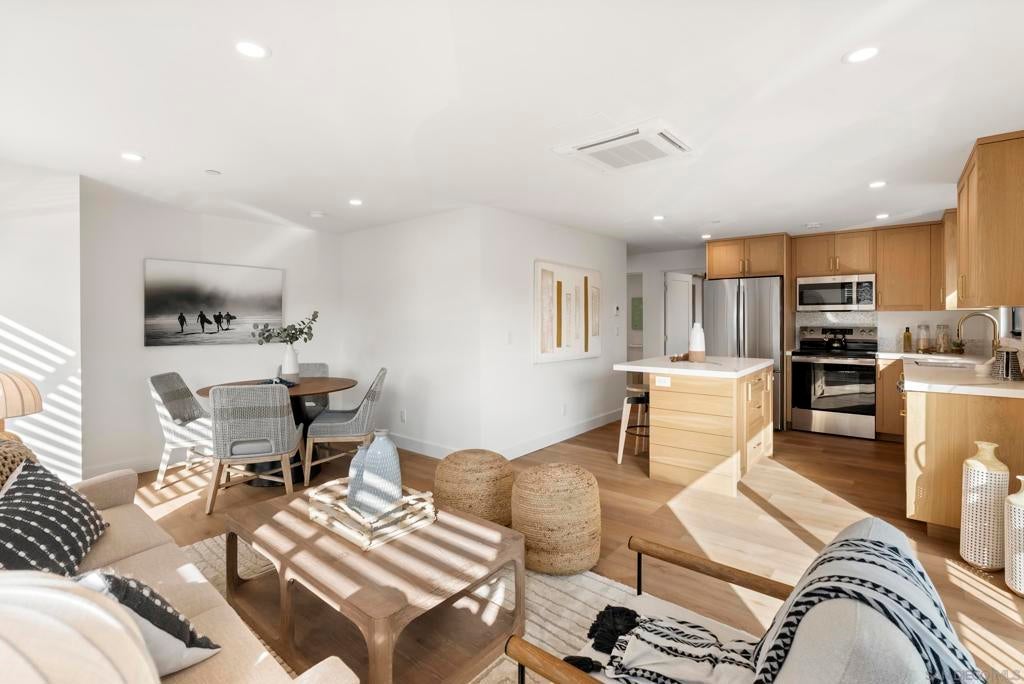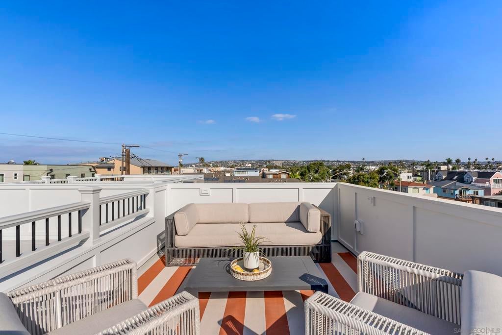 Only 1 Left! Introducing the Fantasket 3 Townhomes, a sleek and modern coastal Cape Cod–style new construction development featuring three luxury residences on the ocean side of Mission Beach. This is an exclusive opportunity, with the next door home already pending! Built by a highly reputable local builder and backed by a full builder warranty, this 4-bedroom, 4-bath home spans three thoughtfully designed levels and offers the ultimate in low-maintenance, luxury beach living. The first floor features a versatile bedroom or ideal home office with direct front patio access, a full bath, laundry closet, and a direct-access tandem two-car garage. On the second floor, enjoy an open-concept living space with a balcony, a modern kitchen with stainless steel appliances, a dining area, and a bedroom and a full bath. The third floor showcases a primary suite with a spa-inspired bathroom and private balcony, along with another spacious ensuite bedroom that also enjoys its own balcony. A private rooftop deck crowns the home, offering 360° panoramic views of Mission Beach, the Pacific Ocean, and Mission Bay—ideal for entertaining or sunset relaxation. Additional highlights include Atlantis waterproof luxury vinyl plank flooring, designer finishes, wainscoting accents, central heating and A/C splits, and in-unit laundry. Just steps from the sand and walking distance to Belmont Park, Bonita Cove, Fit Athletic Club, The Plunge, and popular dining destinations, this townhome is perfectly suited for full-time coastal living, a vacation retreat, or a premium investment property.