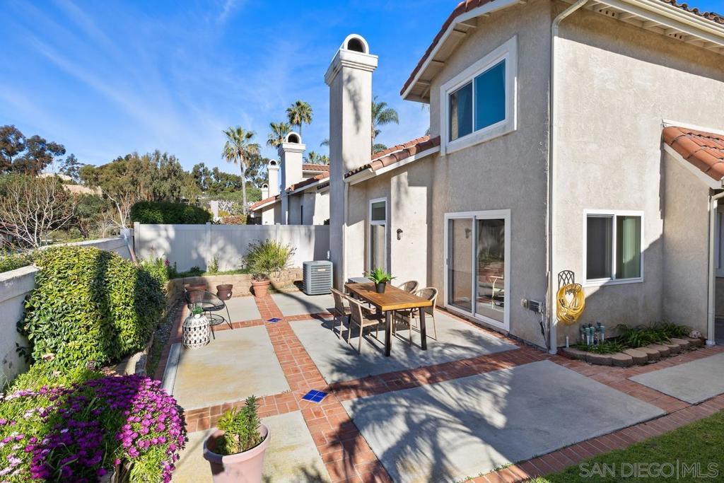 Lovely 3BR 2.5BA in popular Barcelona in the heart of La Jolla Colony. Private perimeter lot with lots of sunshine all day long. The best in indoor-outdoor living with a generous back yard, featuring a lovely patio/garden area. Pretty outlook to Mt. Soledad. Volume ceilings, spacious kitchen, walk-in showers. Solar power with battery pack, recent roof, air conditioning, duel paned windows. Steps to lovely pool-spa. Enjoy the La Jolla Colony park and walking path, with exercise stations to boost your fitness. Close to MTS Trolley, Freeway 5, bus, grocery store, restaurants, banks, etc. Hard to beat this convenient location!
