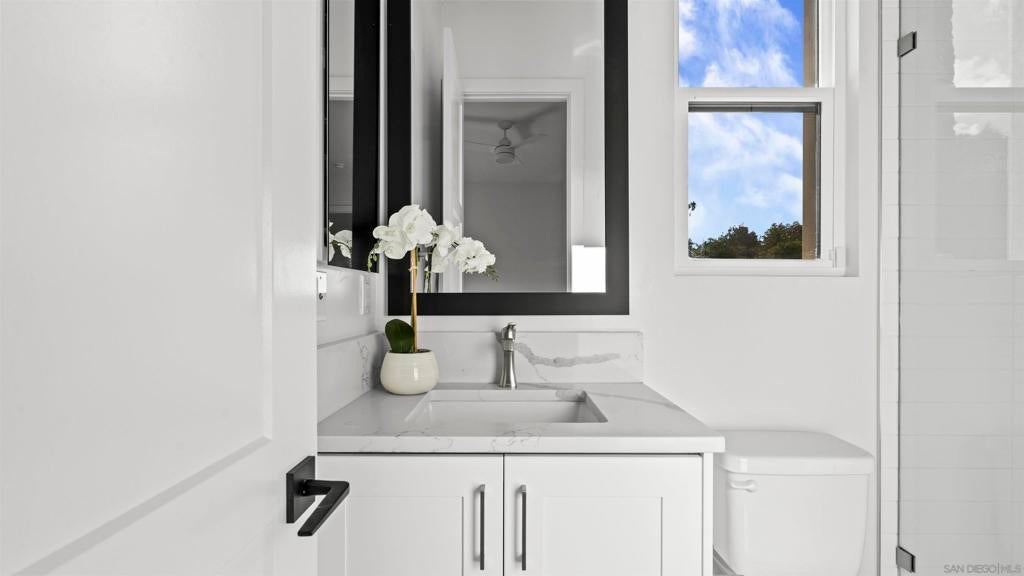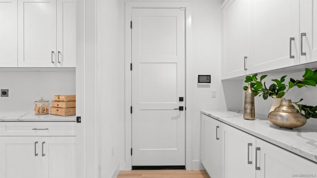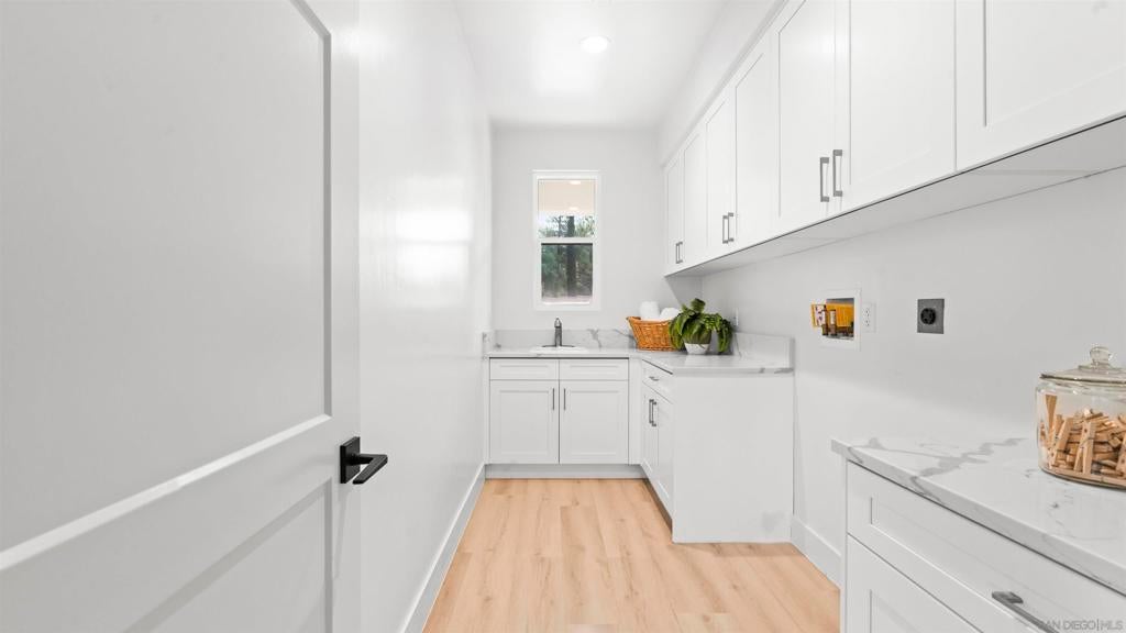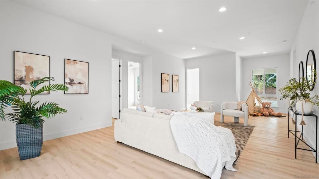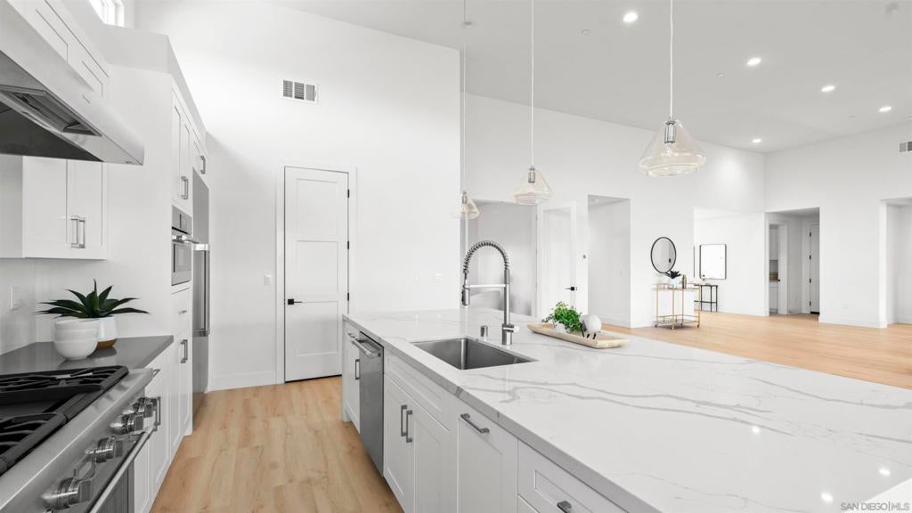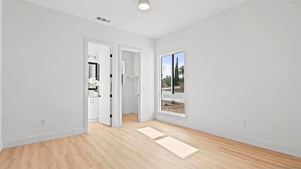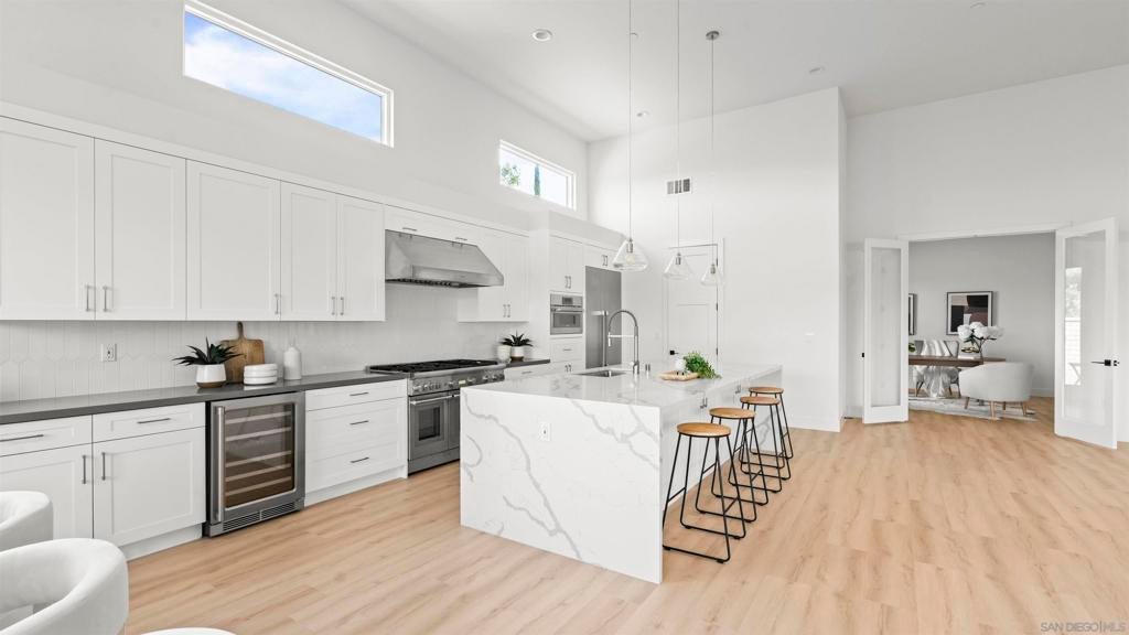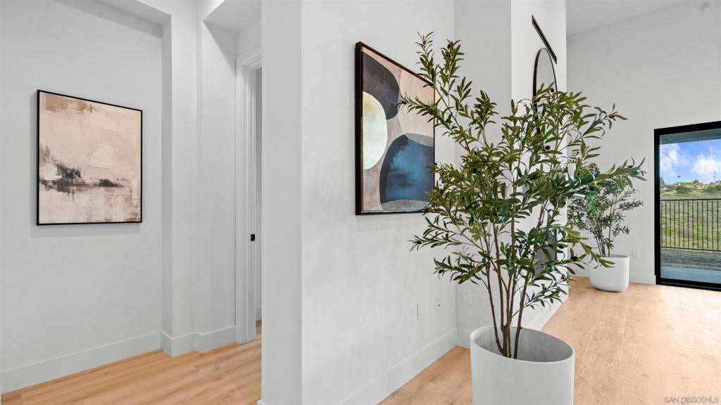 A true stunner, this brand-new, never-lived-in modern home sits on its own private, oversized lot with no neighboring homes, offering exceptional privacy, breathtaking canyon views, and potential to build an ADU. Located in North Poway, near The Heritage and the entrance of Maderas Country Club, the home also provides direct access to nearby hiking trails and serene natural surroundings. This thoughtfully designed residence features 4 bedrooms, 4.5 bathrooms, a dedicated office, and a bonus room, with each bedroom offering its own ensuite bathroom and walk-in closet. Upon entry, you are welcomed into a stunning grand room with soaring 15-foot ceilings and expansive windows that frame the canyon views and flood the home with natural light. The gourmet kitchen is equipped with Thermador appliances, including a 48-inch gas range, hood, wine chiller, microwave, and refrigerator—ideal for both everyday living and entertaining. Recent upgrades include new sleek modern garage doors, new flooring throughout, owned solar, dual-zone HVAC, and an EV charger for modern convenience. As an added value, HOA dues are paid through June 2027. This is a rare opportunity to own a private, luxury new-construction home with views, premium upgrades, and an exceptional location in one of Poway’s most desirable communities.