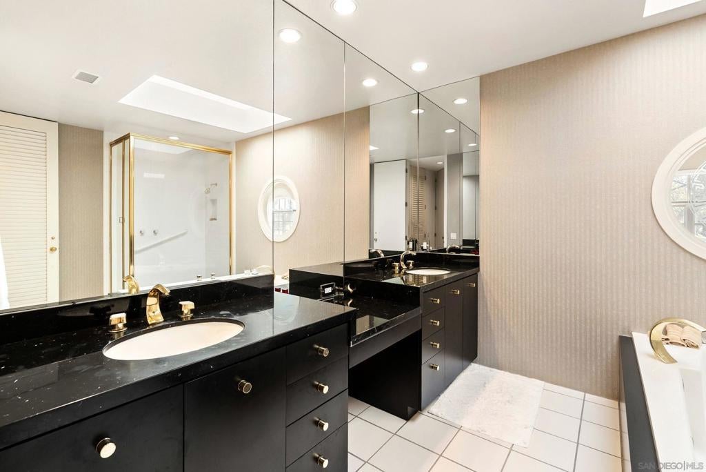 Sitting directly on the prestigious Omni La Costa Golf course in Carlsbad, this home is surrounded by unmatched 270 degree views of fairways and greens. Tucked in the exclusive guard-gated community of The Jockey Club, the home features soaring 22ft ceilings, floor-to-ceiling French windows showcasing the view, newer high-end appliances including a Wolf stove and Thermador convection oven, and ample natural light throughout. The dual master suites upstairs each have their own en-suite baths, with the main master featuring dual sinks, a dedicated vanity, and separate jetted tub and shower. Walk directly onto the golf course from the home's peaceful, private patio while enjoying stunning sunsets. The Jockey Club complex also offers beautifully manicured grounds, a pool, spa, clubhouse, sauna, and prime location with easy access to the beach, all the amenities at Omni La Costa Resort & Spa, The Forum, Bressi Ranch, and numerous restaurants and shopping centers. The homes in The Jockey Club are highly coveted, this home is not one to be missed!