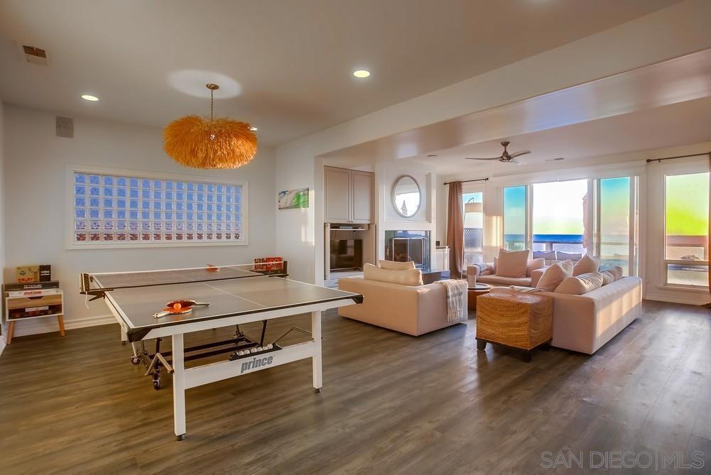 Experience unobstructed ocean and sunset views from this bright, spacious oceanfront residence in the heart of Encinitas. Designed for effortless coastal living, the open floor plan is filled with natural light and ideal for both everyday comfort and entertaining. The main level features soaring ceilings and a seamless flow between the living room, dining area, game room, and kitchen. A gas fireplace anchors the living room, where expansive picture windows frame sweeping ocean vistas. The kitchen offers a large island with bar seating, dual ovens, built-in refrigerator and microwave, abundant cabinetry, and direct sightlines to the oceanfront patio. The dining area enjoys dramatic water views, creating a stunning backdrop for gatherings. Upstairs, the private oceanfront primary suite serves as a retreat with fireplace, sitting area, and walls of glass capturing panoramic coastline views. The spa-inspired bath includes dual vanities, soaking tub, and separate shower. An expansive private deck spans the width of the home, while an adjacent den provides flexible space for an office, media room, or lounge. Outdoor living shines with two oceanfront patios designed for relaxation and entertaining, a landscaped grassy yard, private gated entry, and upper and lower seawalls enhancing coastal frontage. Ideally located near Stonesteps Beach, downtown Encinitas, Encinitas Ranch Golf Course, and convenient freeway access, this is a rare opportunity to own a premier oceanfront property in a coveted coastal setting.