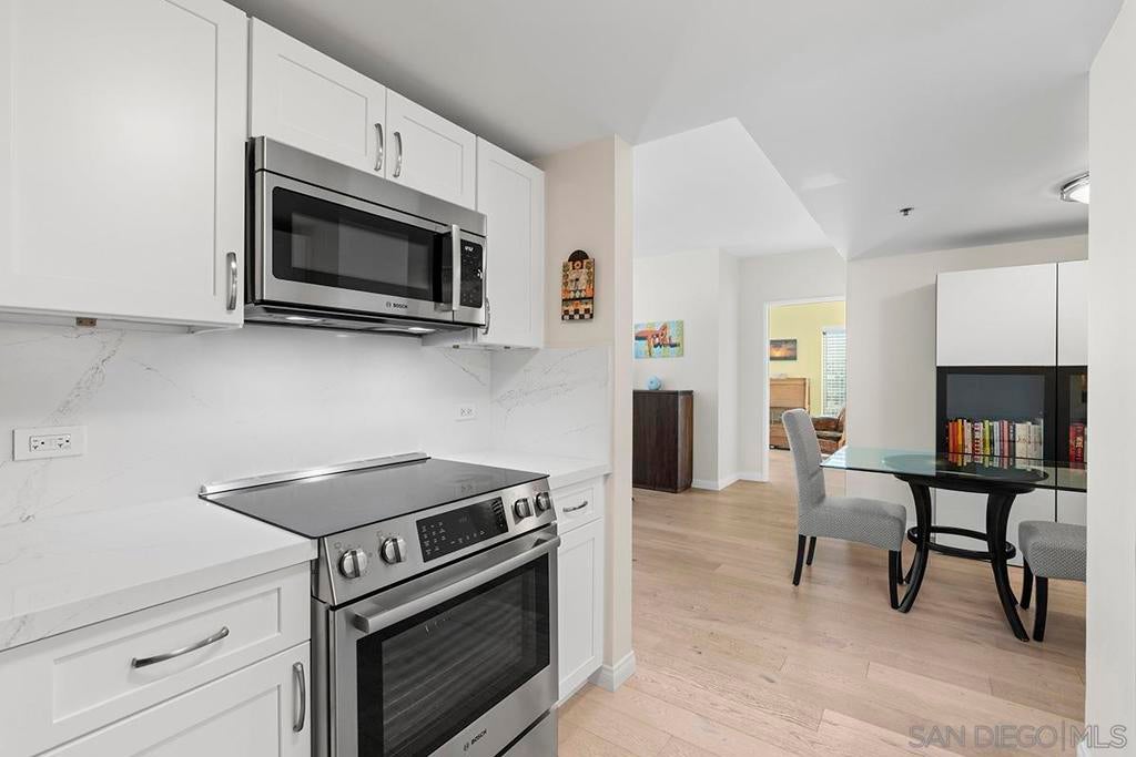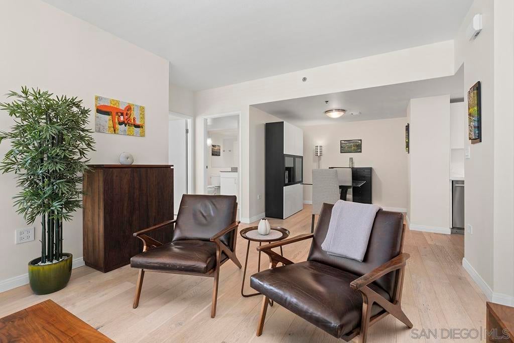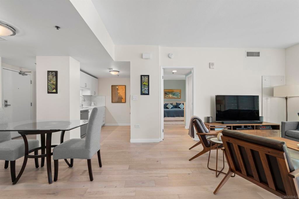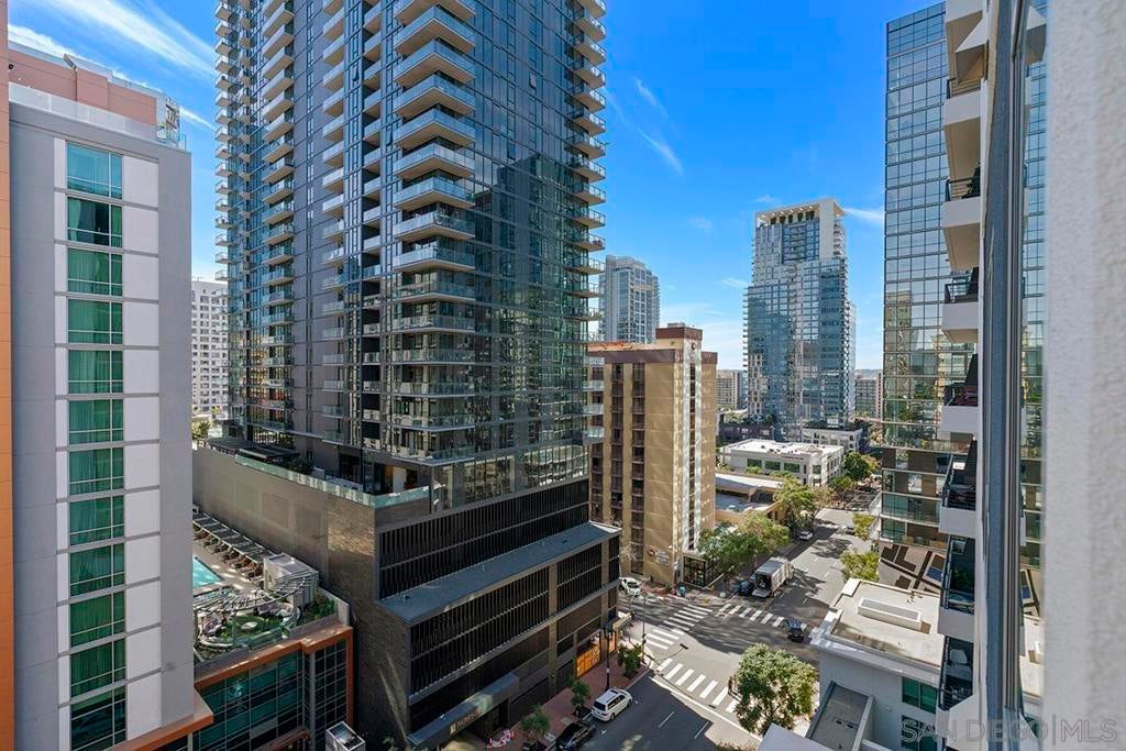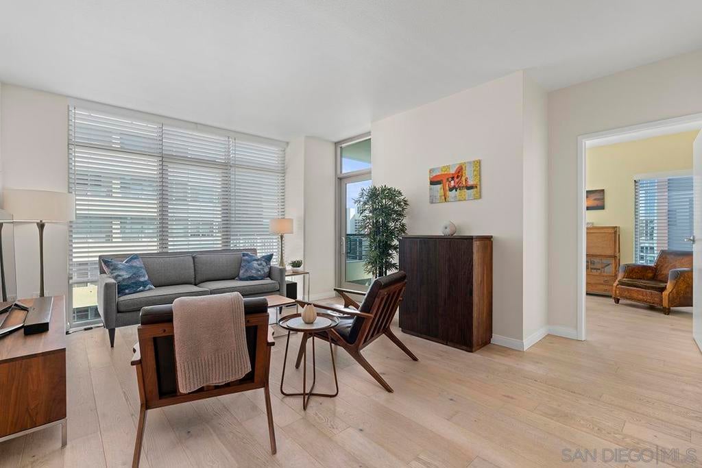 Little Italy Stunner! This immaculate 2-bedroom, 2 bath CORNER UNIT on the 12th floor of Acqua Vista is bathed in natural light and shows like a model home! Located in the vibrant heart of Little Italy - Downtown San Diego’s most sought-after neighborhood, and just moments away from countless restaurants, nightlife hotspots, chic cafes and the beloved Saturday Farmer’s Market make this the perfect residence for your new urban lifestyle. Split-bedroom open floor plan with a spacious living and dining area, featuring sleek Reward Barbados European oak engineered hardwood flooring. The remodeled kitchen boasts white cabinetry, Silestone quartz countertops, a stainless undermount sink with Culligan osmosis reverse system, and Bosch & Whirlpool stainless appliances. Enjoy a covered balcony with city views—without the hot afternoon sun. Additional upgrades include custom shutters and wood blinds, newer washer/dryer, and added storage. Valet parking is included for one vehicle, and a second spot may be leased. Building amenities include 24-hour lobby attendants, an 8th-floor pool and hot tub, and a fully equipped exercise room. Downtown San Diego's Little Italy is a vibrant culinary and cultural hotspot, beloved for its rich history and modern flairs. Classic restaurants like Mona Lisa and Civico 1845, alongside new favorites Ironside, Juniper & Ivy, and Craft & Commerce, make it a go-to for local foodies. The neighborhood is filled with cafes, bakeries, boutiques, bars, and wine shops, perfect for an evening wander. The Little Italy Association also keeps the calendar full with community events such as art walks, car shows, the yearly Little Italy Festa, and a vibrant Farmers Market on Wednesdays and Saturdays. Don’t forget the NoLi Art & Design District, a vibrant hub that includes a collection of retail outlets, designer boutiques, and art galleries, all boasting unique home items and rare discoveries to help you curate the perfect ambiance for your new residence. Acqua Vista features complimentary valet parking for residents, 24/7 security and lobby attendants, a fitness center, and an 8th floor pool and spa deck, barbecues and lounge area. Residents can also take advantage of the community’s electric vehicle charging stations. *Have a 2nd vehicle? The HOA leases additional parking spaces too!*