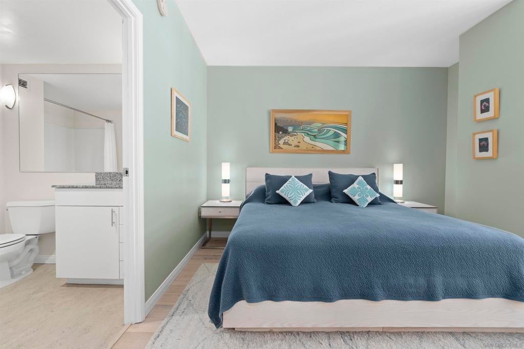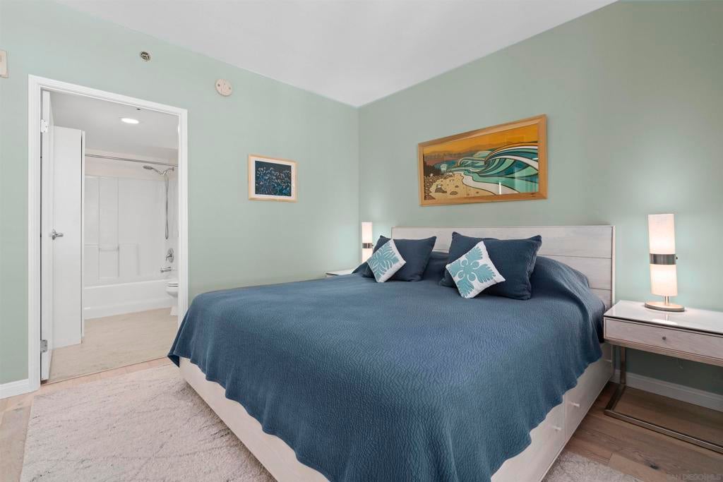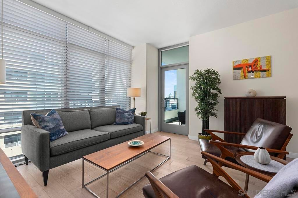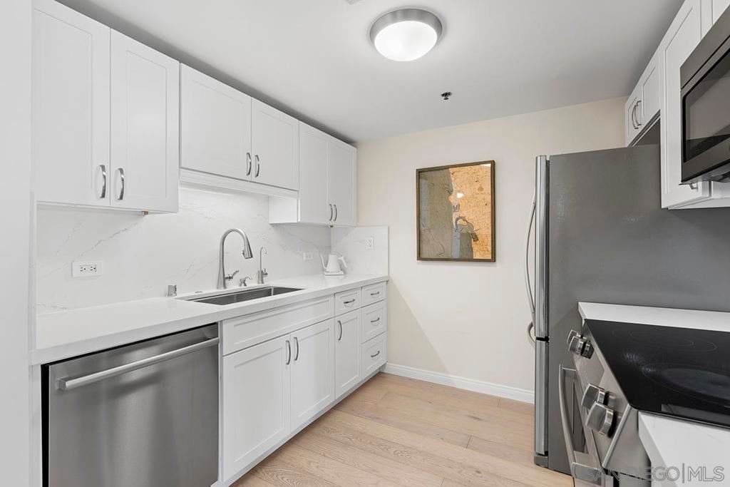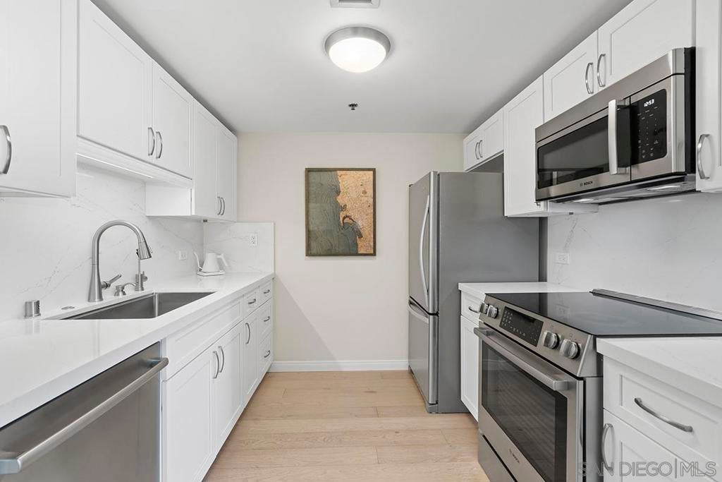 Little Italy Stunner! This immaculate 2-bedroom, 2 bath CORNER UNIT on the 12th floor of Acqua Vista is bathed in natural light and shows like a model home! Located in the vibrant heart of Little Italy - Downtown San Diego’s most sought-after neighborhood, and just moments away from countless restaurants, nightlife hotspots, chic cafes and the beloved Saturday Farmer’s Market make this the perfect residence for your new urban lifestyle. Split-bedroom open floor plan with a spacious living and dining area, featuring sleek Reward Barbados European oak engineered hardwood flooring. The remodeled kitchen boasts white cabinetry, Silestone quartz countertops, a stainless undermount sink with Culligan osmosis reverse system, and Bosch & Whirlpool stainless appliances. Enjoy a covered balcony with city views—without the hot afternoon sun. Additional upgrades include custom shutters and wood blinds, newer washer/dryer, and added storage. Valet parking is included for one vehicle, and a second spot may be leased. Building amenities include 24-hour lobby attendants, an 8th-floor pool and hot tub, and a fully equipped exercise room. Downtown San Diego's Little Italy is a vibrant culinary and cultural hotspot, beloved for its rich history and modern flairs. Classic restaurants like Mona Lisa and Civico 1845, alongside new favorites Ironside, Juniper & Ivy, and Craft & Commerce, make it a go-to for local foodies. The neighborhood is filled with cafes, bakeries, boutiques, bars, and wine shops, perfect for an evening wander. The Little Italy Association also keeps the calendar full with community events such as art walks, car shows, the yearly Little Italy Festa, and a vibrant Farmers Market on Wednesdays and Saturdays. Don’t forget the NoLi Art & Design District, a vibrant hub that includes a collection of retail outlets, designer boutiques, and art galleries, all boasting unique home items and rare discoveries to help you curate the perfect ambiance for your new residence. Acqua Vista features complimentary valet parking for residents, 24/7 security and lobby attendants, a fitness center, and an 8th floor pool and spa deck, barbecues and lounge area. Residents can also take advantage of the community’s electric vehicle charging stations. *Have a 2nd vehicle? The HOA leases additional parking spaces too!*