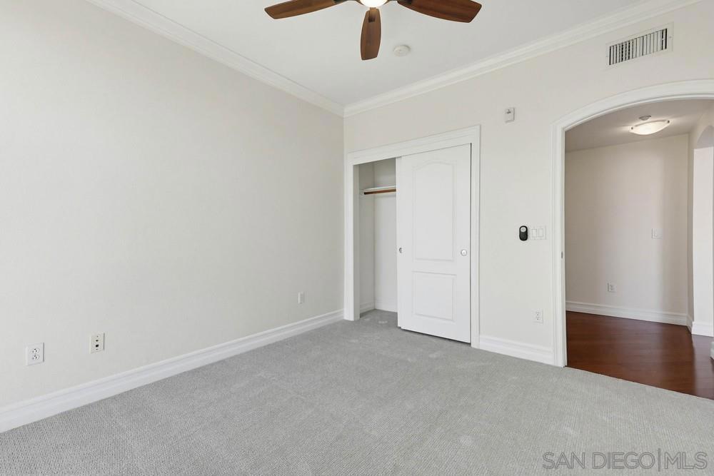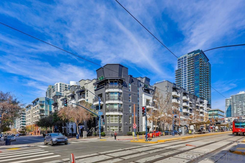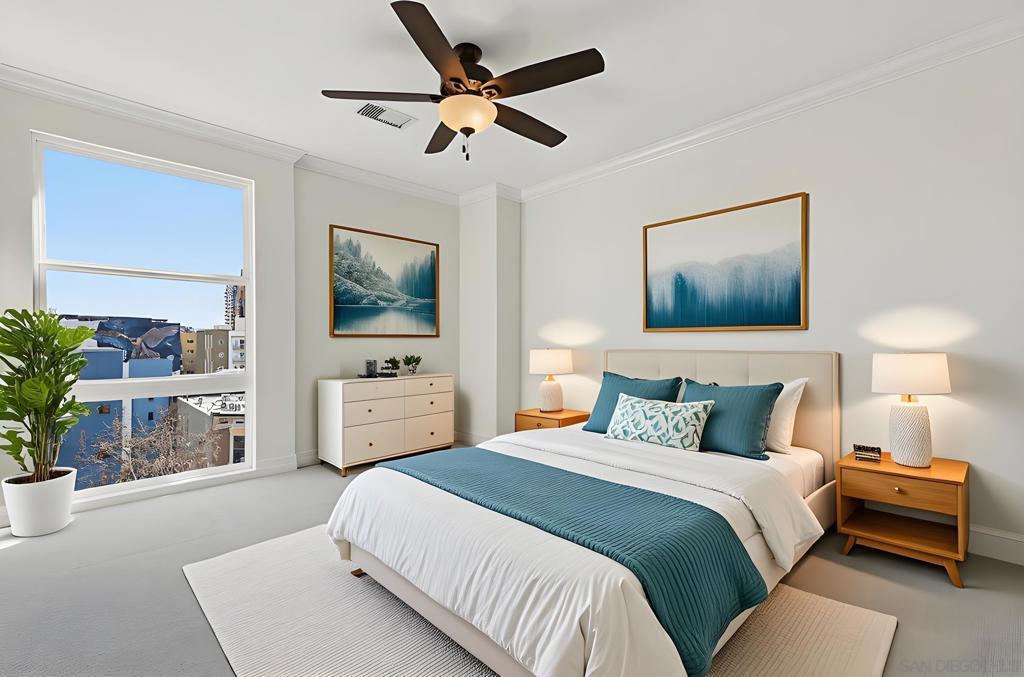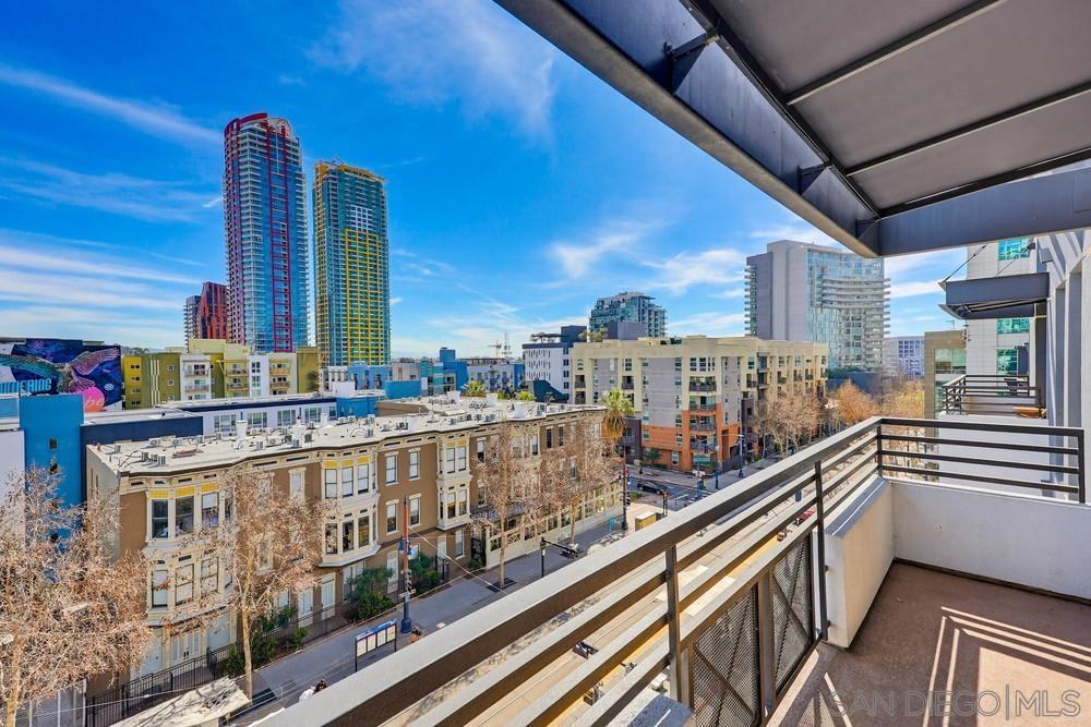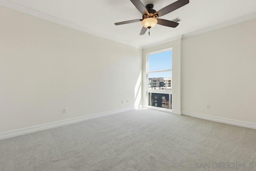 Top-floor residence at Park Blvd West featuring a rare PRIVATE ROOFTOP DECK with stunning downtown skyline views! This home offers an outdoor setup rarely found in East Village: a massive private roof deck plus a second balcony off the main living area. Inside, the split 2BR/2BA floor plan provides ideal privacy, with bedrooms separated by a bright, open living space refreshed with new paint, new recessed lighting, and brand-new carpeting. Hardwood floors anchor the main living areas, while the kitchen features clean modern cabinetry, granite counters, and stainless steel appliances. The living room is designed for real living, offering great wall space for art or media, a cozy fireplace, and sliding doors for effortless indoor-outdoor flow. Upstairs, the rooftop deck is your personal urban escape—perfect for entertaining, fitness, or pets under the city lights. The primary suite includes a walk-in closet and en-suite bath with dual sinks. Notable essentials include in-unit laundry, central HVAC, and two coveted tandem parking spaces in a secure gated garage. Located just steps from Petco Park, the Trolley, and the best of downtown San Diego.