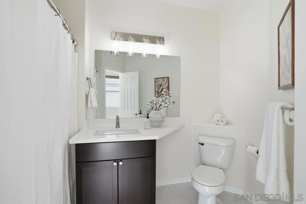 Beautiful Encinitas townhouse delivers elevated coastal living just minutes from Moonlight State Beach and vibrant downtown Encinitas. Newly renovated and filled with natural light, this beautifully updated 1,088 sq. ft. home offers modern comfort in a highly desirable coastal community. The fully equipped kitchen features stainless-steel appliances, a large pantry, new counter, new cabinets and a sunlit window that brightens the space. Downstairs showcases wood flooring, while upstairs offers brand-new neutral carpeting for a fresh, contemporary feel. Expansive ceilings, upgraded light fixtures, and ceiling fans enhance the open and airy layout throughout. The inviting living room is centered around a cozy fireplace and features sliding glass doors that open to a private, fenced, low-maintenance backyard — ideal for relaxing after the beach or entertaining guests. Additional upgrades include central air conditioning and heating, plus a full-size washer and dryer for everyday convenience. The attached one-car garage is complemented by an additional assigned parking space. Residents enjoy resort-style community amenities including a pool, spa, BBQ area, and a private fenced dog park. Turnkey, stylish, and ideally located near the sand, dining, and shopping — this is Encinitas coastal living at its finest.