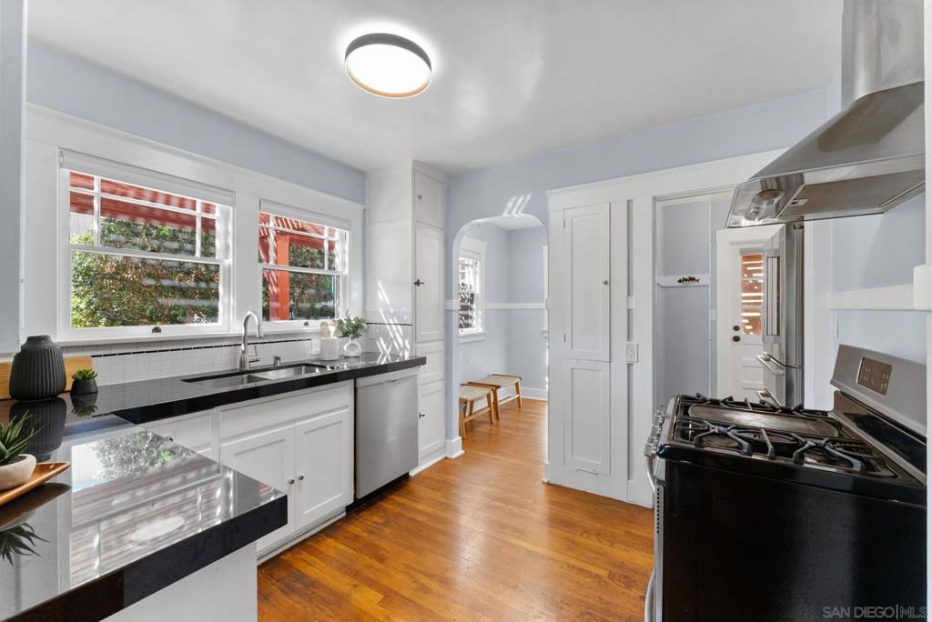 Perfectly positioned just steps from everything you love in Kensington Village, this single-level Spanish beauty w/ OWNED SOLAR blends classic character with effortless livability. From the moment you step inside, you’re welcomed by immaculate original hardwood floors, a stunning barreled ceiling, and a spacious living room anchored by a gas fireplace framed with rich wood built-ins. The layout flows seamlessly into a private dining room just off the kitchen — ideal for intimate dinners or hosting friends before strolling down to Adams Avenue. Natural light fills the home, highlighting its warmth and architectural details. The kitchen offers a warm and functional space designed for both everyday living and effortless entertaining. With generous counter space, abundant cabinetry, and a thoughtful layout, it flows naturally into the dining room while still maintaining its own distinct presence. The rear bedroom features charming doors that open directly to a serene, Zen-inspired backyard retreat. Thoughtfully designed with Spanish tile accents and a beautiful gazebo, the outdoor space feels like a private escape — ideal for morning coffee, al fresco dining, or quiet evenings under the stars. Mature landscaping enhances the sense of privacy while still allowing the space to feel open and inviting. A detached one-car garage provides convenience and flexibility — perfect for secure parking, additional storage, or even a creative studio space. Homes in Kensington at this price point — especially ones that are this turn-key and rich in original character — are exceptionally rare.