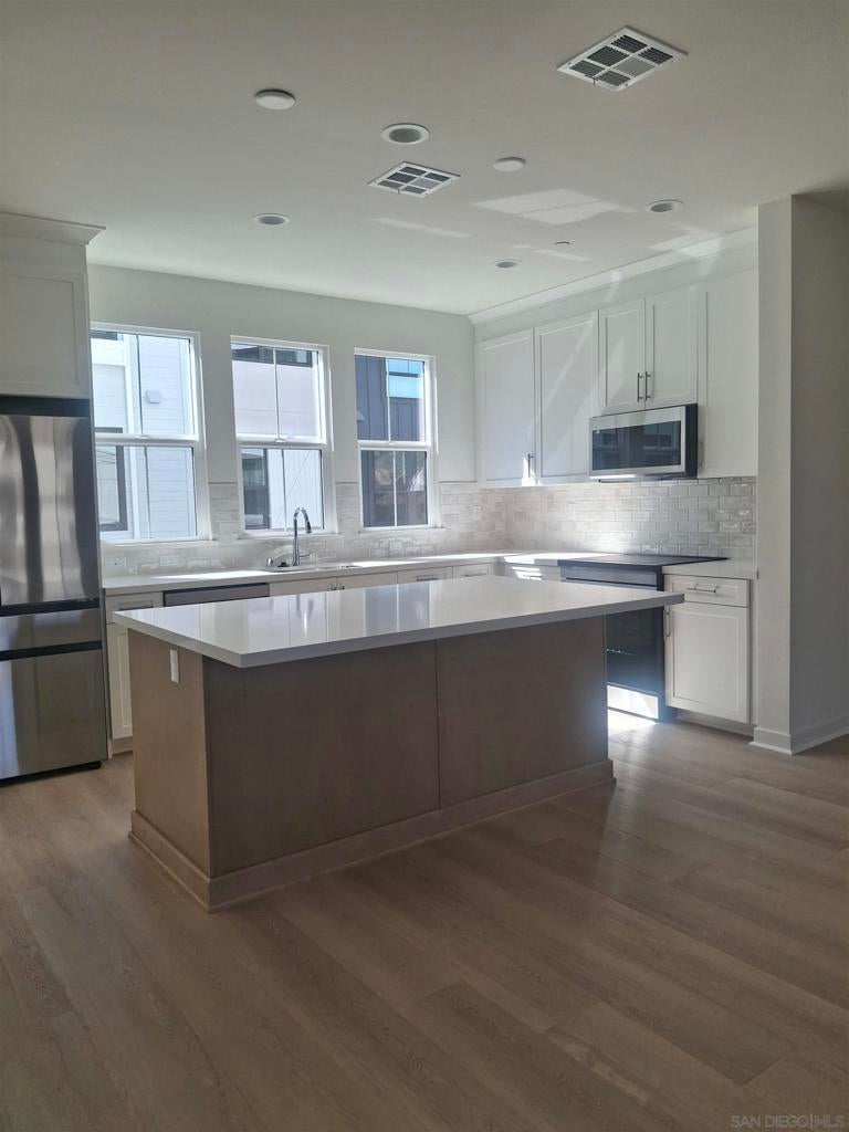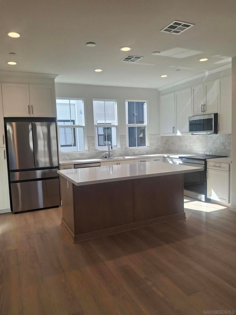 Enjoy carefree coastal living at its finest! Minutes to Beaches, Carlsbad Village and Top Carlsbad Schools! Welcome to Marja Acres, a newly built townhouse community in sought after Coastal Carlsbad. This charming sun-drenched beach house sits in a Premium Sparkling Water View location near the Splendid Resort Style Community Pool Pavilion! It is loaded with upgrades and shows like a model! Be the very first to enjoy this brand-new never lived in coastal retreat! The entry level floor features a private patio, a sunny bonus room with luxury vinyl wood-look flooring, ideal for home office, gym or guest room plus a half bath. The main level features an open concept great room with half bath and a splendid designer kitchen complete with quartz island countertops, ample cabinets, designer stainless steel appliances and a walk-in pantry complete with barn door. SEE Supplement Below for more details! The top floor offers 3 sunny bedrooms with 2 full baths. The bathrooms offer quartz countertop vanities, and stone and ceramic tile floors and tub and shower surrounds. Flooring is top of the line Lux Wood Look Vinyl with designer stone/ceramic tile flooring in baths. The home has solar power and a ring security system. The community offers a resort style pool and lounging area complete with gas grills, a spa, ample lounge chairs and shaded tables ideal for entertaining guests and family. There is also a dog park, bocce ball court, a playground, and community parks ideal for relaxing in the ocean breeze. Zoned for the sought after Kelley Elementary School on of Carlsbad's finest!