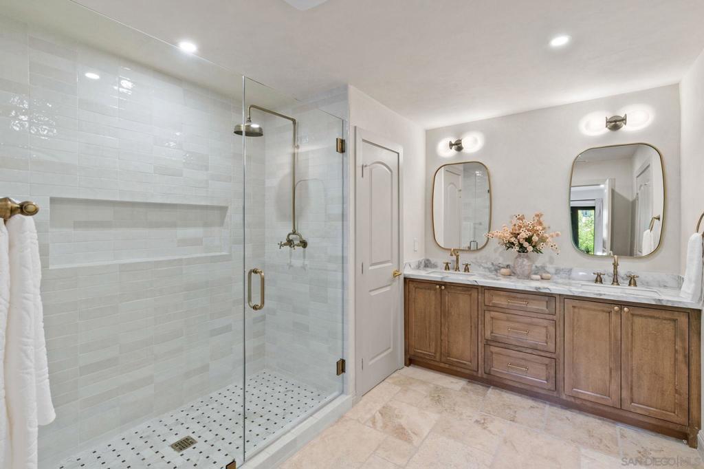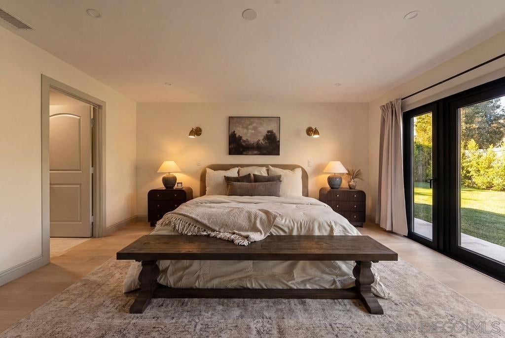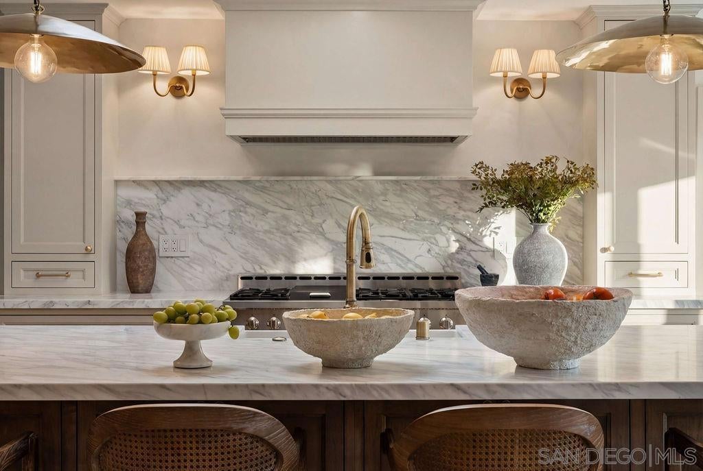 This newly reimagined, single-level home has a European-inspired vibe that blends old world charm and sophistication with modern functionality. It has a calming essence, a soft color palette, and beautiful natural light. The welcoming great room, comprised of the family room, informal and bar dining, and a delicious kitchen with a huge island, farmer's sink and top-of-the-line appliances, has retracting doors opening to the large, sunny yard, perfect for daily indoor/outdoor living. Every space invites. This home, in a highly coveted location, is simply gorgeous. On a cul-de-sac street with access to beaches, scenic trails, and shopping and in very close proximity to UCSD, the YMCA, Torrey Pines Elementary, houses of worship, and more. The home is a delight.