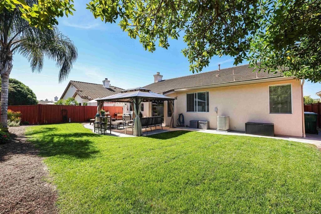Welcome home to this lovely 3 bedroom 2 bath move-in ready home. This beautiful home boasts several windows which fills the home with an abundance of natural light. Warm wood laminate flooring, vaulted ceilings, and an open concept eat-in kitchen with a large island, walk-in pantry and a cook’s favorite - gas cooking! The primary suite has a large soaking tub, separate shower, and walk in closet. This home has all the extras - ceiling fans throughout, a fireplace for those cool evenings, central air and heat, a direct access two car garage and you NEED to see the fun laundry room. The backyard is perfect for families or entertaining all while being easy to maintain with mature landscaping. Conveniently located close to shopping, restaurants, and only a mile from the Camp Pendleton San Luis Rey Gate (“back gate”).