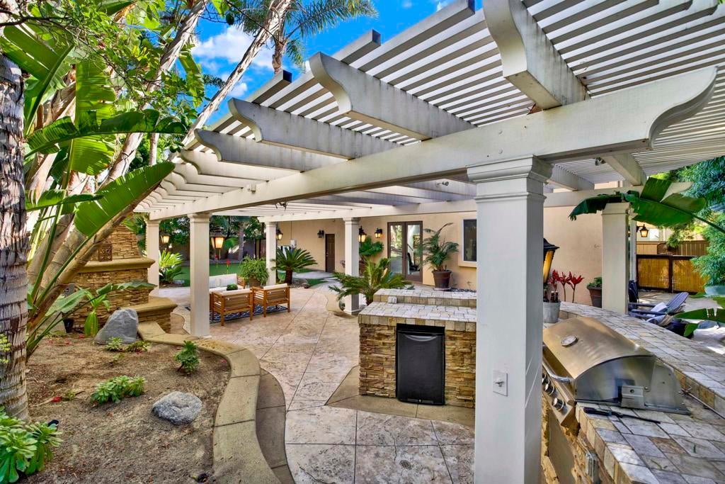 Resort-style living in this magnificent home, ideally located within the highly coveted & gated community of Marea at Aviara! As you enter, you are greeted with soaring vaulted ceilings displaying an abundance of natural light. Immediately upon entry, you'll discover the stunning and tranquil private & custom rear yard, featuring a beautiful oversized wood-burning fireplace, built-in bbq, and a 4 hole putting green-all while enjoying the tranquil sound of the flowing rock waterfall. The large & spacious primary suite includes an intimate sitting area with a newly refinished tile fireplace, complimented by a remodeled primary bath with walk-in closet. Newly remodeled kitchen boasts an expanded center island, perfect for family dinners. Upstairs you will find an additional enclosed office or bonus room with a sliding barn door. BONUS: This home comes with the best of the best Solar, two Tesla Power-wall batteries with whole-home backup system, allowing the home to withstand virtually ANY type of power outage, all topped with a brand-new roof!! Puronics whole home water filtration system. Conveniently located near dining, shopping, beaches, schools, and freeway access and just a short stroll to the Park Hyatt Aviara Resort Golf Club & Spa. This is truly the best of California Coastal living in Carlsbad!