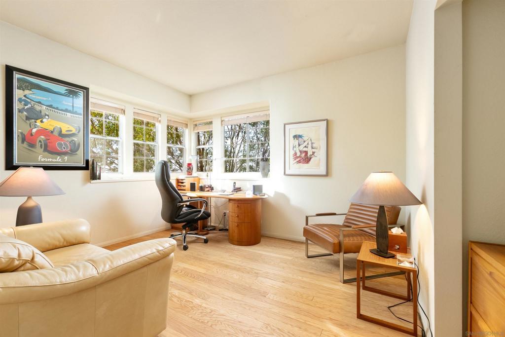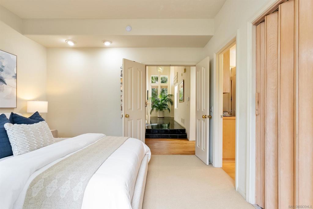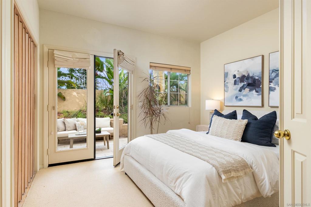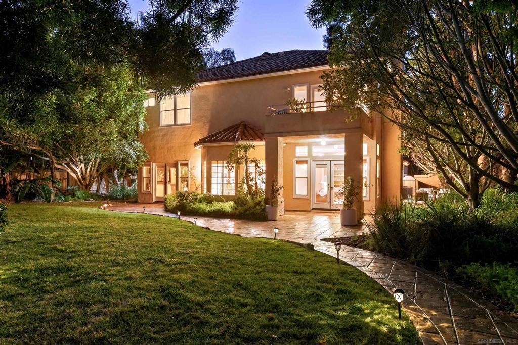 Nestled on an expansive corner lot in Scripps Ranch, this prestigious residence offers elegance, comfort, and architectural significance inside and out. The showcase resort-style backyard features a 75-ft Olympic-length heated pool, surrounded by Saltillo-tiled patios and multiple outdoor areas with lush landscaping, creating an ideal setting for both grand gatherings and intimate evenings framed by mature trees that provide exceptional privacy. Inside, soaring ceilings, stacked windows, and four sets of French doors fill the home with natural light, creating seamless indoor-outdoor living. The chef’s kitchen includes refaced cabinetry, new appliances, and a cozy eat-in nook. The flexible floor plan includes a lower-level bedroom with a full bath and private patio, perfect for guests, multigenerational living, or a home office. Details include solid oak hardwood floors, marble tile, new carpeting, custom built-ins, two fireplaces, and recessed lighting. The primary suite features dual walk-in closets, a spa-like ensuite with a separate soaking tub, and an outdoor balcony. Additional features include a three-car garage with epoxy floors, built-ins and custom stand-up attic storage, upgraded HVAC, a new water heater, a camera security system, and a separate laundry room. With no rear neighbors and only one side neighbor, this property offers privacy while being close to Lake Miramar, top-rated schools, and parks, truly capturing the Scripps Ranch lifestyle.