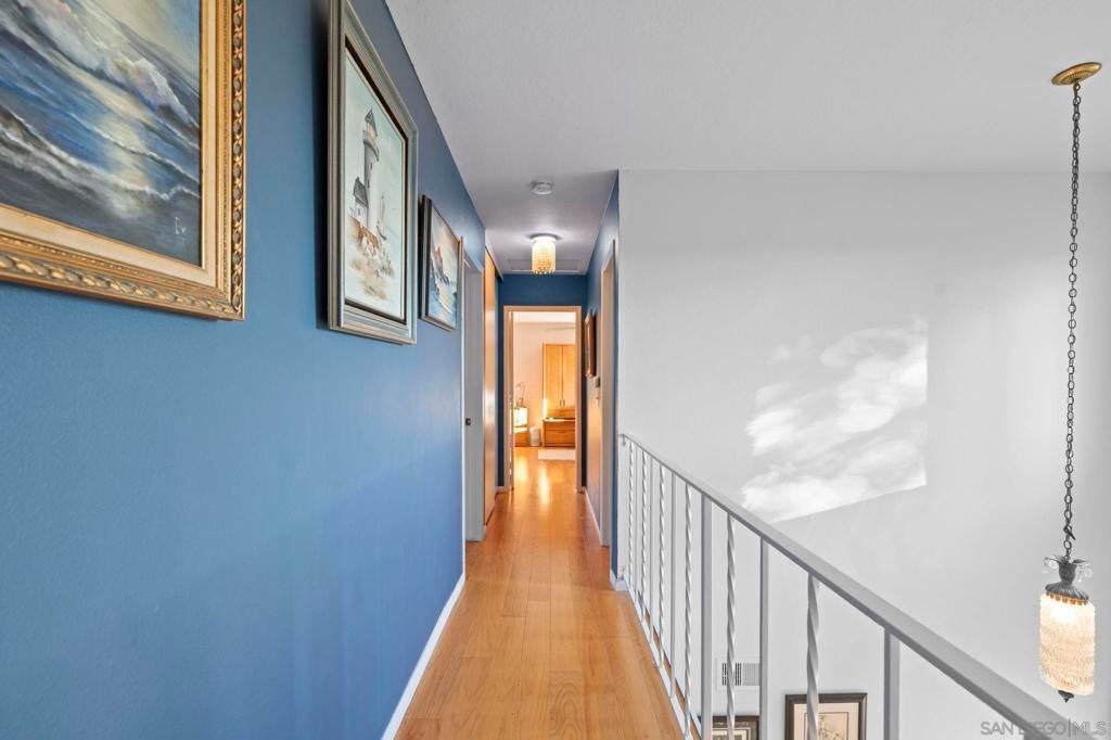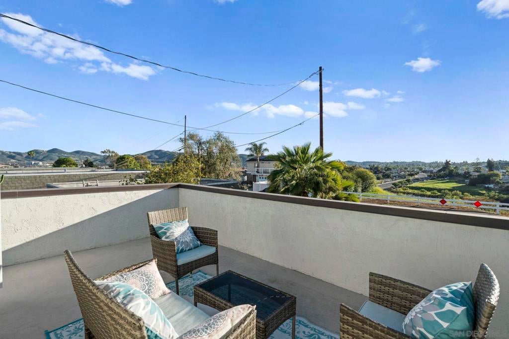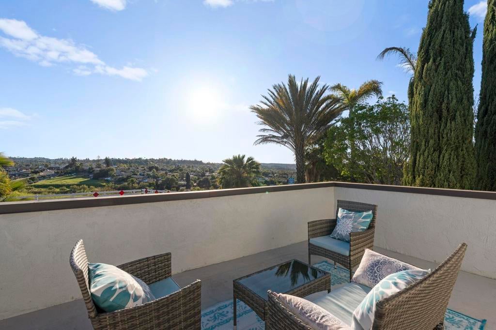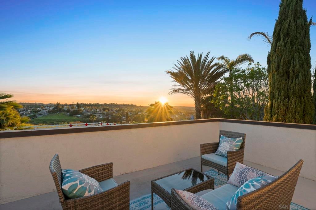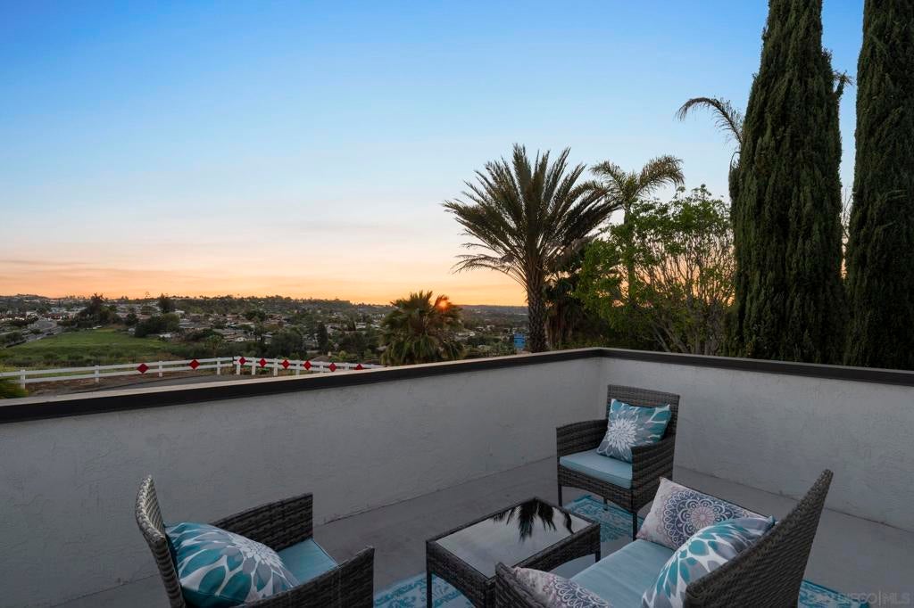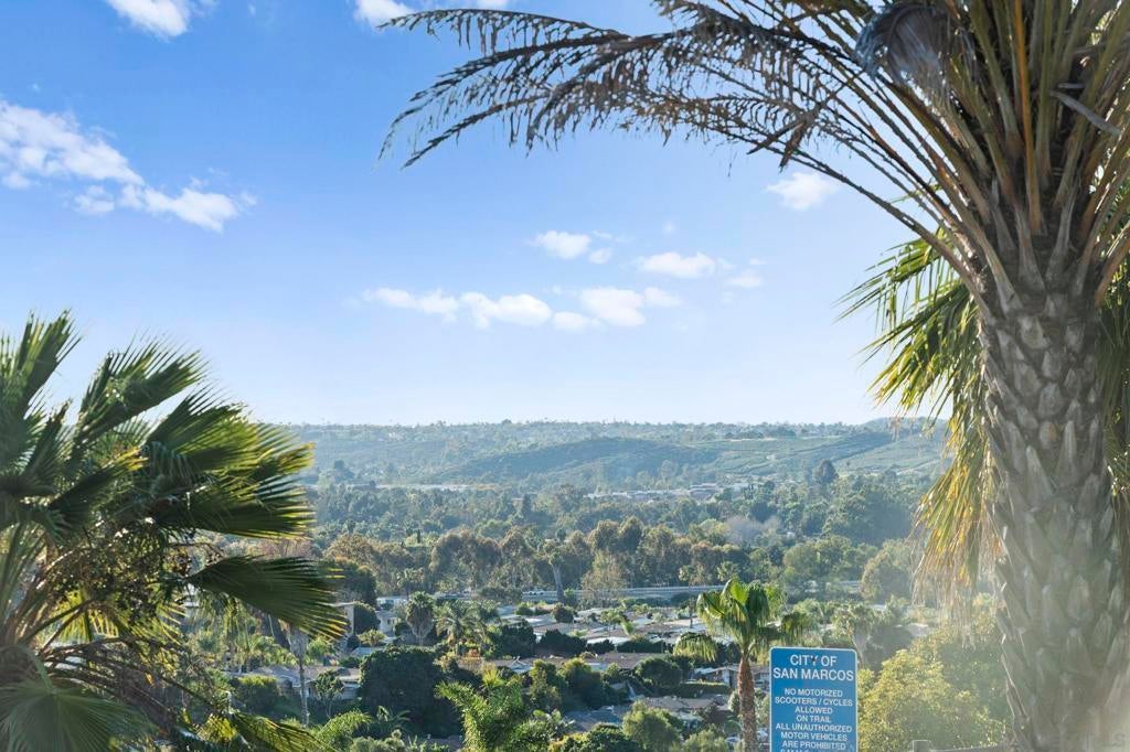 Enjoy breathtaking, panoramic VIEWS all the way to the Ocean from atop San Marcos! Great curb appeal, sitting on nearly 1/4 Acre at the top of the hill on a cul-de-sac, this one's a 'one-of-a-kind' & truly a must-see! The double door entry creates a formal, inviting feel & the interior is especially light & bright as this home sits on a hilltop location! Updates include upgraded Low-E windows & slider allowing for tons of natural light inside the home, newer exterior doors & paint, newer roof just 1 year old, upgraded hardwood & 'LVP' luxury vinyl plank flooring throughout, newer appliances including refrigerator, dishwasher & washer/ dryer, a gas ‘range’ oven in the kitchen, all 3 upgraded bathrooms w/ newer cabinetry, sinks, flooring, toilets, lighting and more! The gorgeous ‘french' doors off the primary bedroom lead to the private balcony offering breathtaking VIEWS all the way to the OCEAN & spoiling you w/ spectacular sunset VIEWS every evening. WOW! You'll have to see it to appreciate it! Most of the home has been tastefully upgraded while still preserving its original charm. NO HOA fees saves you thousands every year & there's plenty of 'off-street' parking & room w/ privacy in front of the property at the end of the road. You’ll also really enjoy the private backyard w/ refinished deck & covered patio all surrounded w/ mature & low-maintenance landscape on a quiet, serene setting. Located conveniently close to San Marcos schools for all ages including CSUSM, nearby hiking & biking trails, local dining & shopping and everything else San Marcos has to offer! Easy 78 freeway access just down the hill & VIEWS TO THE OCEAN!