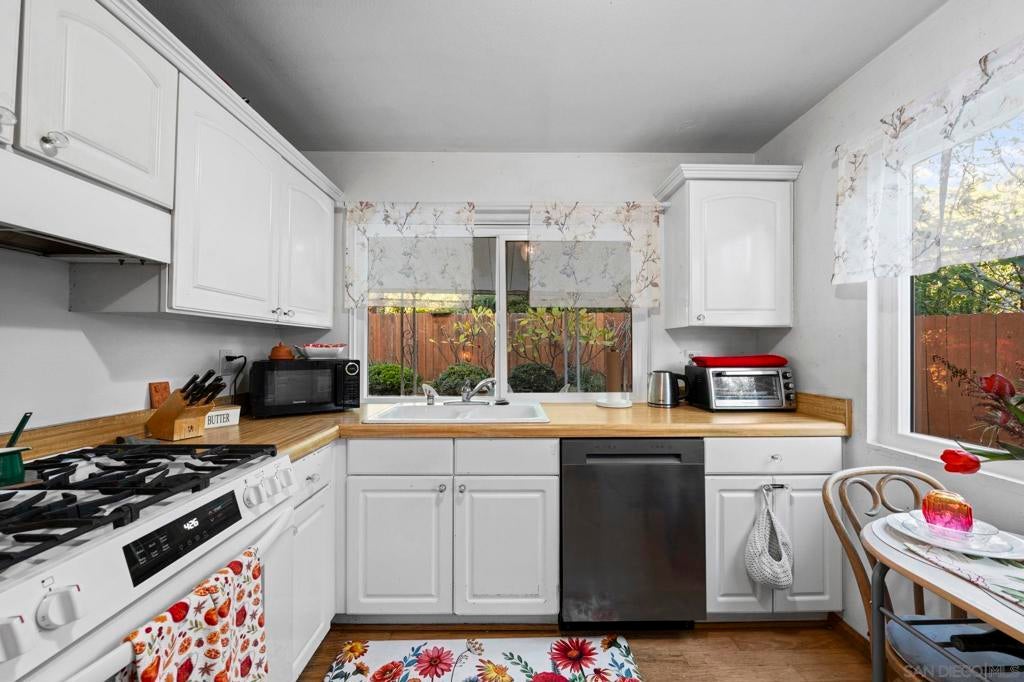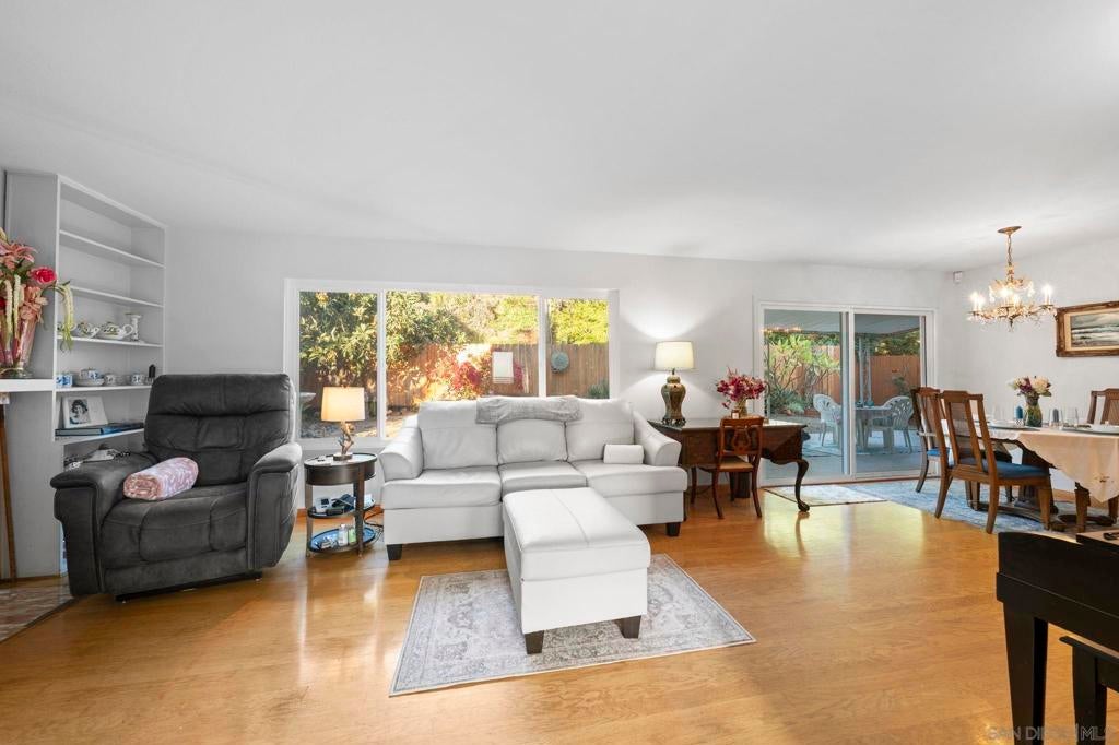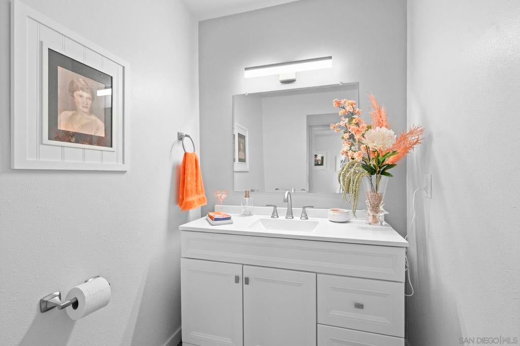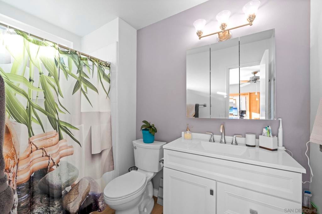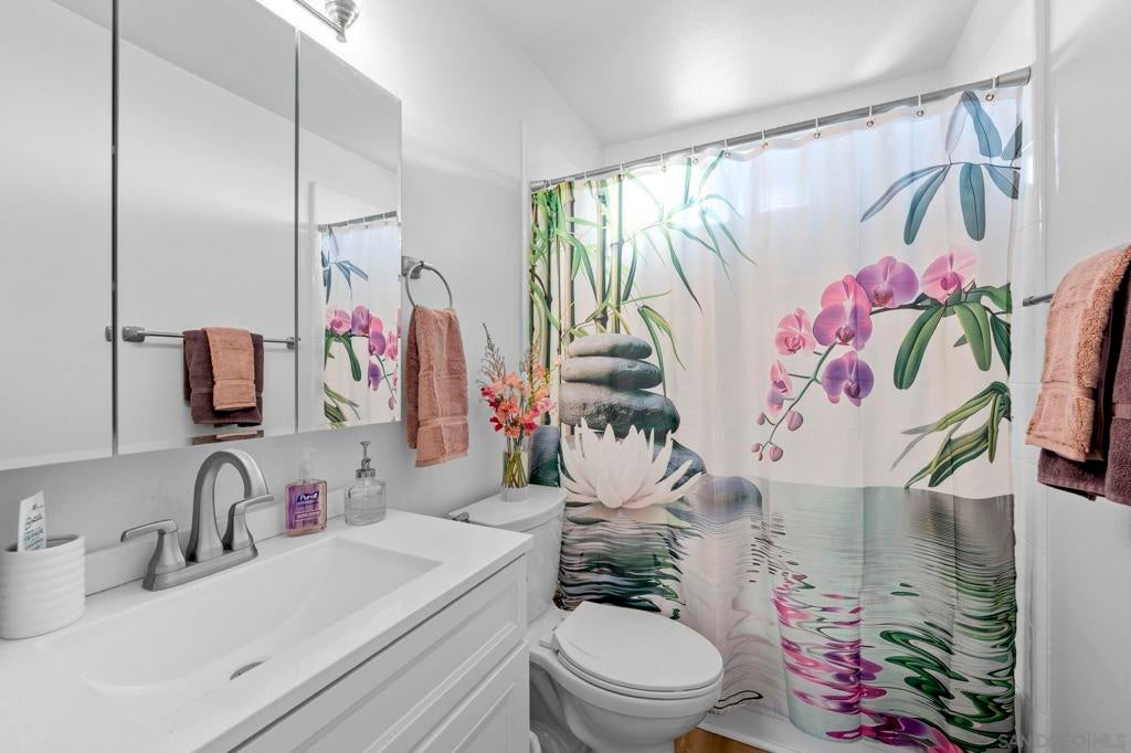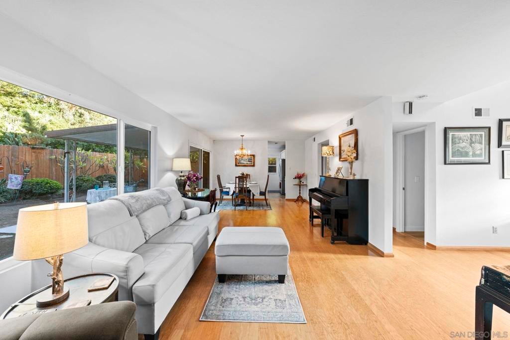 Enjoy breathtaking, panoramic VIEWS all the way to the Ocean from atop San Marcos! Great curb appeal, sitting on nearly 1/4 Acre at the top of the hill on a cul-de-sac, this one's a 'one-of-a-kind' & truly a must-see! The double door entry creates a formal, inviting feel & the interior is especially light & bright as this home sits on a hilltop location! Updates include upgraded Low-E windows & slider allowing for tons of natural light inside the home, newer exterior doors & paint, newer roof just 1 year old, upgraded hardwood & 'LVP' luxury vinyl plank flooring throughout, newer appliances including refrigerator, dishwasher & washer/ dryer, a gas ‘range’ oven in the kitchen, all 3 upgraded bathrooms w/ newer cabinetry, sinks, flooring, toilets, lighting and more! The gorgeous ‘french' doors off the primary bedroom lead to the private balcony offering breathtaking VIEWS all the way to the OCEAN & spoiling you w/ spectacular sunset VIEWS every evening. WOW! You'll have to see it to appreciate it! Most of the home has been tastefully upgraded while still preserving its original charm. NO HOA fees saves you thousands every year & there's plenty of 'off-street' parking & room w/ privacy in front of the property at the end of the road. You’ll also really enjoy the private backyard w/ refinished deck & covered patio all surrounded w/ mature & low-maintenance landscape on a quiet, serene setting. Located conveniently close to San Marcos schools for all ages including CSUSM, nearby hiking & biking trails, local dining & shopping and everything else San Marcos has to offer! Easy 78 freeway access just down the hill & VIEWS TO THE OCEAN!