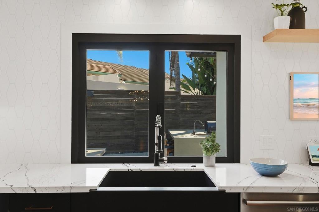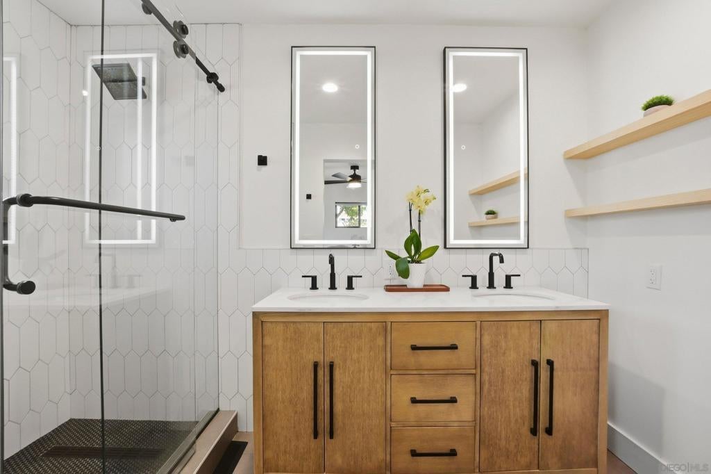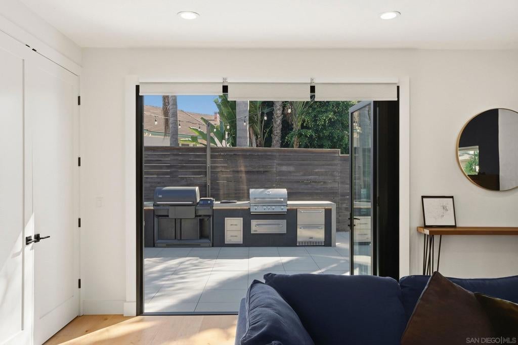 Second time on the market in 65 years — now completely reimagined and virtually rebuilt, offering the feel of new construction. Within the past five years the home has undergone a full high-end remodel with luxury finishes and smart home controls throughout. Extensive upgrades include La Cantina folding doors, French oak floors, new windows, solid wood doors, new appliances, owned solar, custom pool and spa, EV chargers, new HVAC, pool bath, LED lighting, new electrical and main panel, new sewer line, whole-home water filtration system, tankless water heater, and more. Located west of the 5, just steps to Carlsbad Village and the beach on a quiet cul de sac. Desert landscaping helps conserve water, owned solar reduces energy costs, and there is no HOA. The open, light-filled floor plan features premium finishes, designer details, and seamless indoor-outdoor living. Outside, enjoy a private custom pool and inviting outdoor spaces that create a true resort-style retreat.