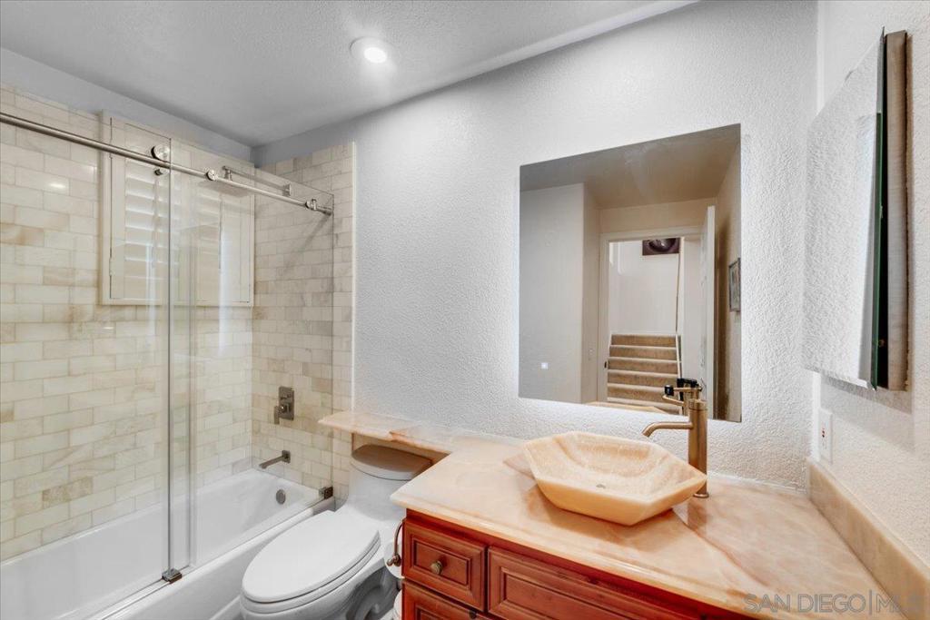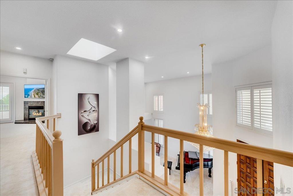 Welcome to “Brisas Del Mar” this stunning solar powered executive-style residence in the heart of Del Mar.As you step through the private front courtyard with a water fountain.You’re welcomed into a home filled with rich Onyx flooring to the elegant designer chandeliers.To your left,a spacious office—perfect for working from home or use as a downstairs guest bedroom for visitors or multi-generational living.To your right, a beautiful formal dining area with a fireplace that meets the most sophisticated of needs.The gourmet kitchen showcases an impressive center island perfect for meal prep, gathering, and entertaining—along with maple cabinetry,a side butler’s pantry and food storage.Top-tier LG appliances include a stove, microwave,dishwasher and double door refrigerator. Easy flow into the warm,inviting family room with a cozy gas fireplace and surround speakers.Walk outside to BBQ or lounge and enjoy your private heated pool and Jacuzzi with no neighbors directly behind. Upstairs, you’ll find four generous bedrooms, including a large primary suite with plenty of room to relax.The bathrooms have been updated with onyx leaf sinks, marble and stone tile floors. Walk out to your private balcony to enjoy ocean sunsets and fireworks from Del Mar Fair.HOA included community lap pools, BBQ’s and lounge aera. Whole house dual control heating and AC with soft water filter included.Luxury living at its finest Walking distance to Flower Hill Mall. Minutes to the Village of Del Mar, Race Track,restaurants,beaches, Award winning schools