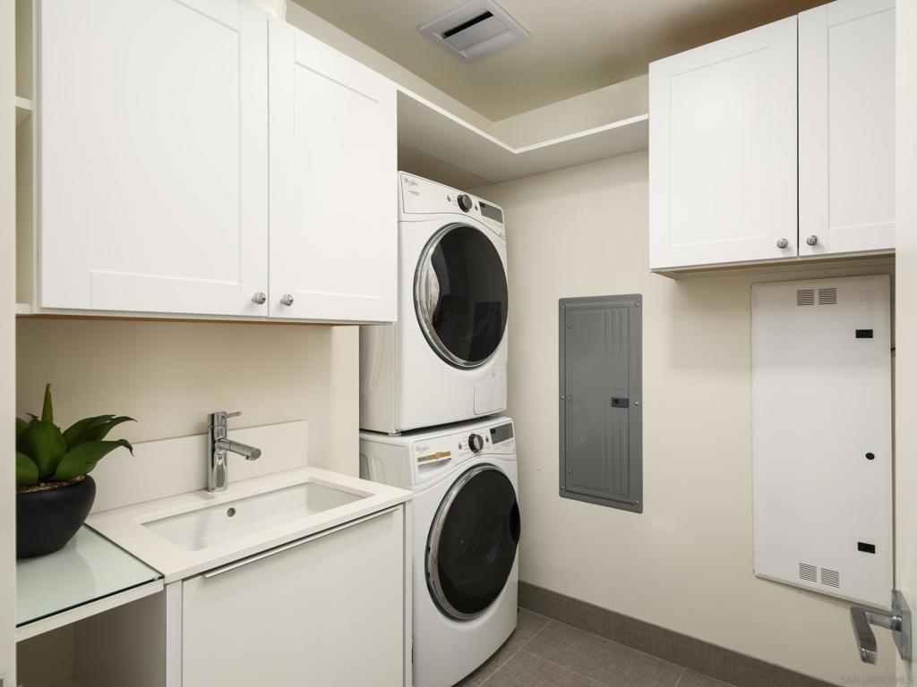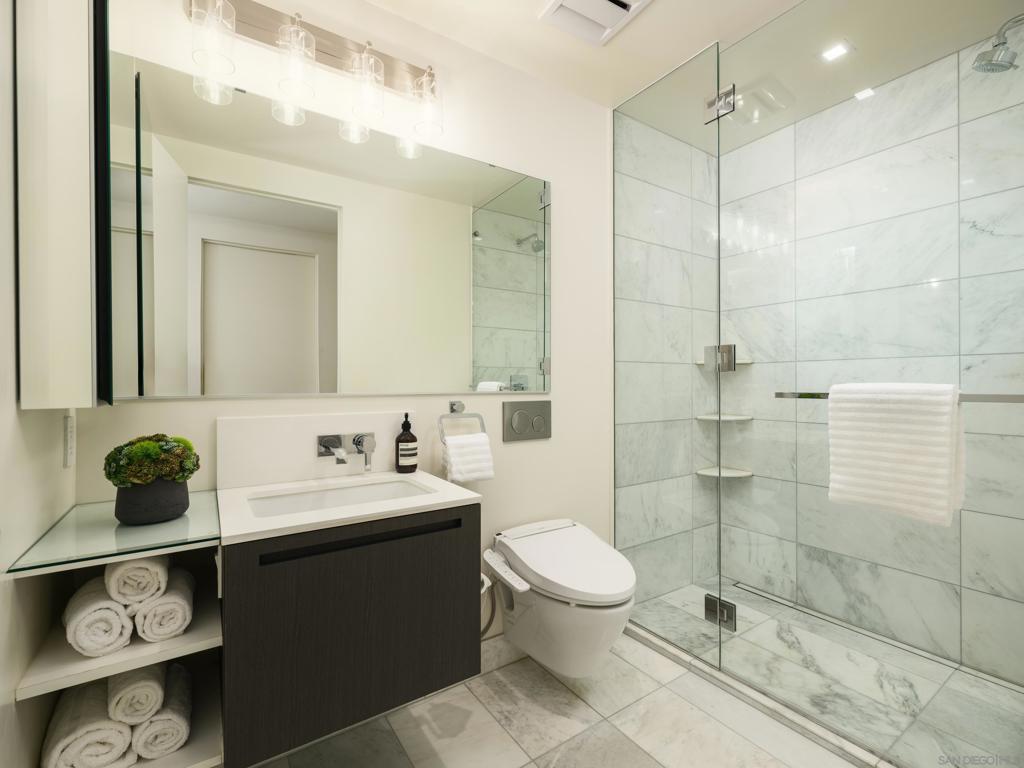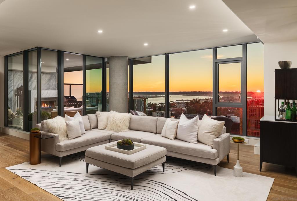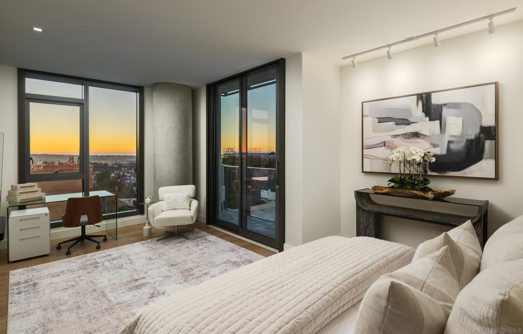 Introducing a truly rare offering at The Park, Bankers Hill, San Diego’s premier address for luxury living. Residences of this caliber and prestige seldom become available, making this an exceptional opportunity to own within one of the city’s most exclusive and tightly held communities. Arrive via your direct access elevator into a luminous residence spanning approximately 2,385 square feet, where floor to ceiling walls of glass dissolve the boundary between interior and exterior living. Positioned on a coveted upper level northwest corner, the home is enveloped in natural light and framed by breathtaking panoramas that stretch from the glittering San Diego Bay to the vibrant downtown skyline. An expansive 320 square foot terrace extends the living experience into the open air, creating a seamless setting for both relaxation and refined entertaining. Here, golden sunsets unfold nightly as the city glows below. Gather for evening cocktails beside the Valakas marble clad fireplace or host intimate dinners with the convenience of your private gas barbecue, all from the comfort and privacy of your own covered terrace. Outdoor living of this caliber is a rarity in high rise design and elevates the residence to an exceptional offering. Designed for elevated daily living and entertaining, the chef’s kitchen is a modern statement. Outfitted with top-tier Miele appliances, sculptural Italian Boffi cabinetry, and a dramatic Caesarstone quartz waterfall island, the space is as functional as it is visually striking, perfect for intimate evenings or grand, unforgettable gatherings. The primary suite is a serene and luxurious sanctuary, thoughtfully designed to evoke a sense of calm and refinement. The spa inspired bath is wrapped in an exquisite Asian Statuary bookmatched marble slab, featuring a deep soaking tub, frameless glass shower, and dual vanities. A custom walk-in wardrobe completes the suite, seamlessly blending impeccable organization with elevated design, and features an additional closet thoughtfully dedicated to accessories. Each additional bedroom offers its own sense of privacy and comfort, with well appointed en suite baths and flexible use as guest accommodations, a private study, or an elegant media lounge, ensuring the residence adapts seamlessly to your lifestyle. The residence is complete with two side by side parking spaces and an oversized private storage unit, all within a secure, architecturally significant building that sets the standard for luxury living in Bankers Hill. Life at The Park is defined by a level of service and amenity rarely found in San Diego. Residents enjoy access to a resort inspired pool and spa, a state of the art fitness center with a dedicated yoga studio, a sophisticated clubroom, and an outdoor owner’s lounge with fire pits, barbecues, and intimate seating areas for both entertaining and quiet retreat. A temperature controlled wine room, pet spa, and two fully furnished guest suites complete with kitchens are available for five nights a month for a nominal $275 cleaning fee. Set moments from Balboa Park and the cultural, culinary, and coastal attractions of San Diego, this home offers a lifestyle that is both vibrant and effortlessly refined. Opportunities to acquire a residence of this caliber within The Park are exceptionally limited, especially one that captures such commanding views, scale, and privacy, making this a truly singular offering for the most discerning buyer.